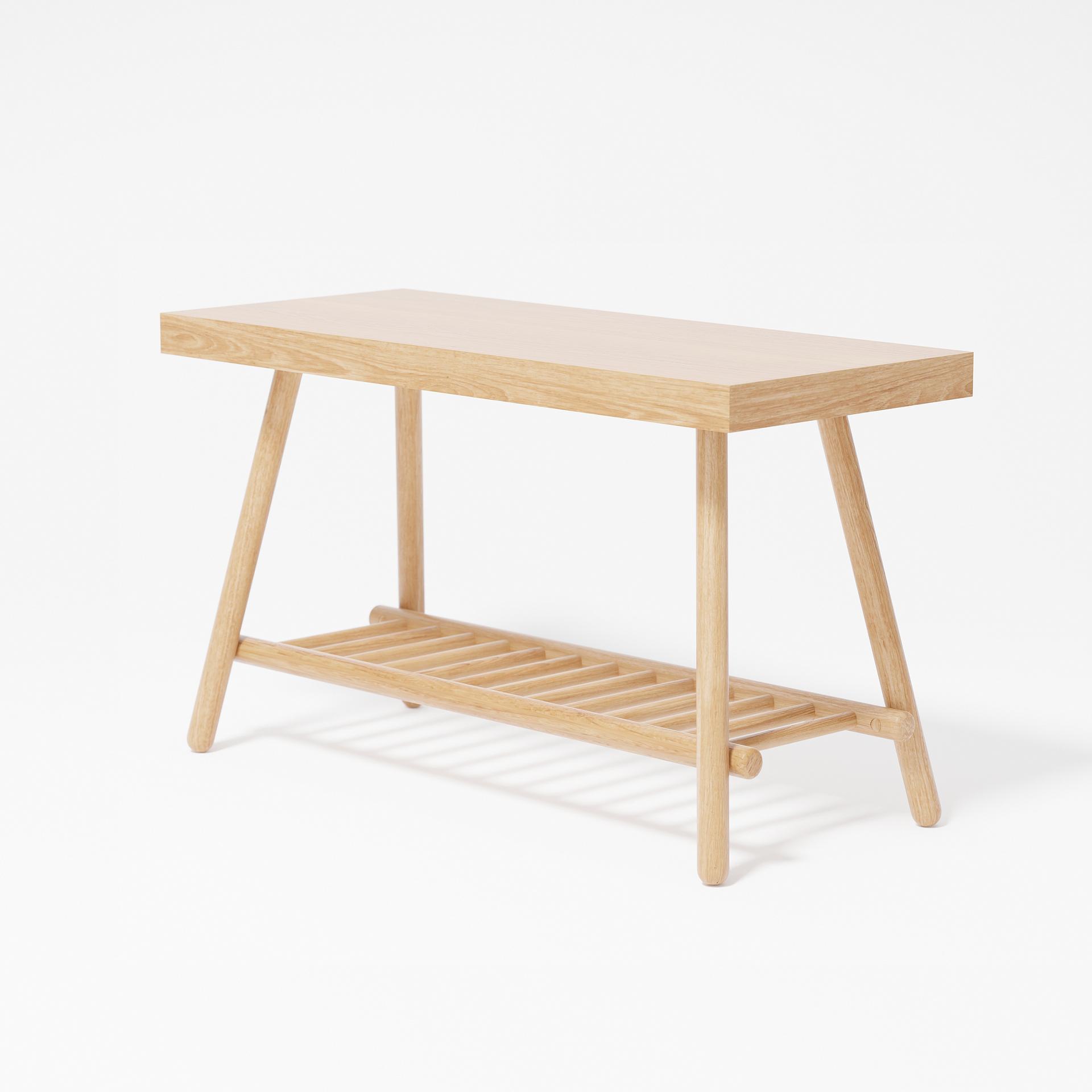 Bench 75 is made from sustainably harvested natural American white oak and oak veneers, selected for their warm colour, beautiful grain pattern and traditional hardwood durability. All edges look crisp but are carefully hand sanded to make them soft to the touch. Finished with a matt, water resistant lacquer. Design by Lincoln Rivers.