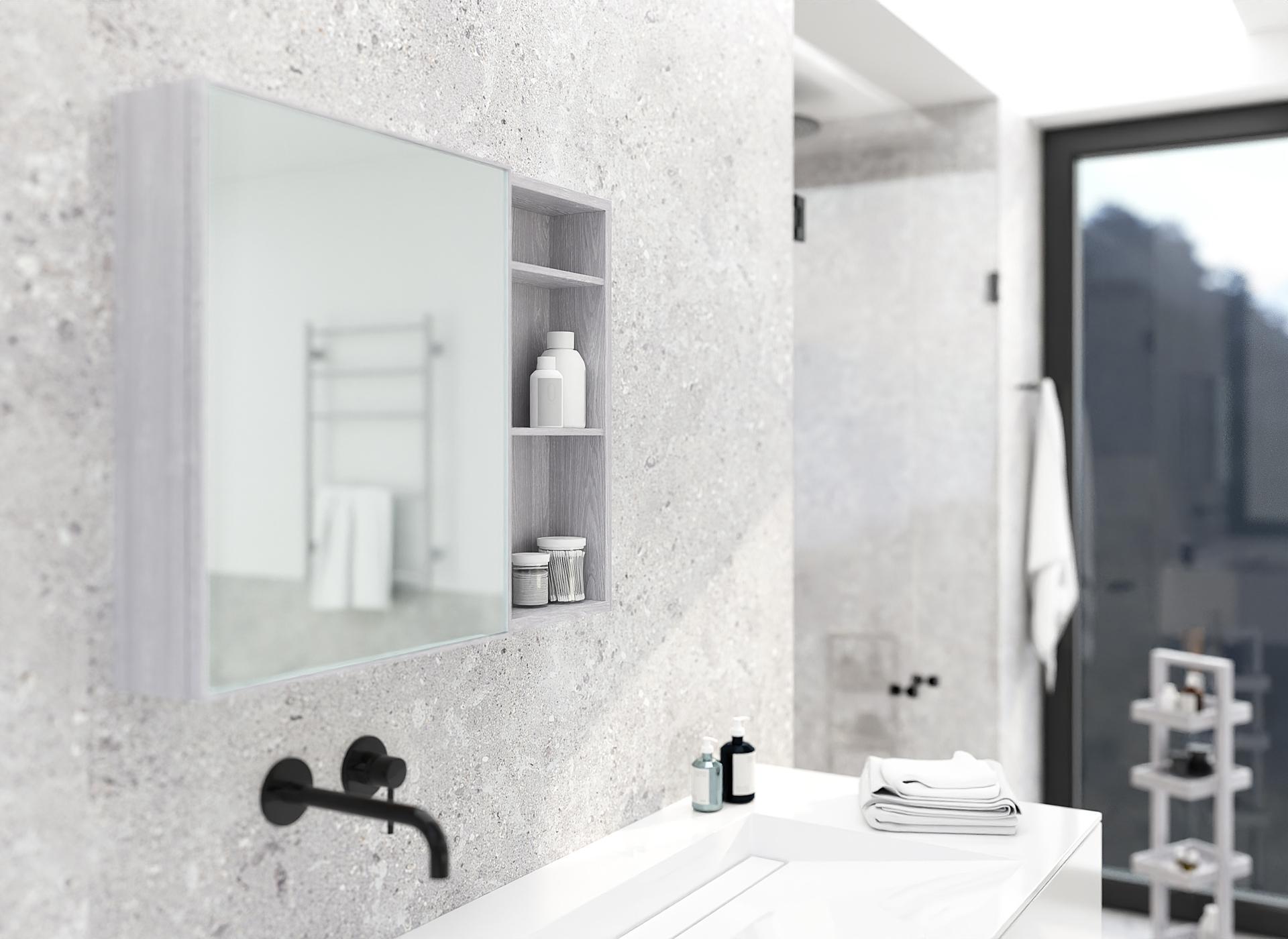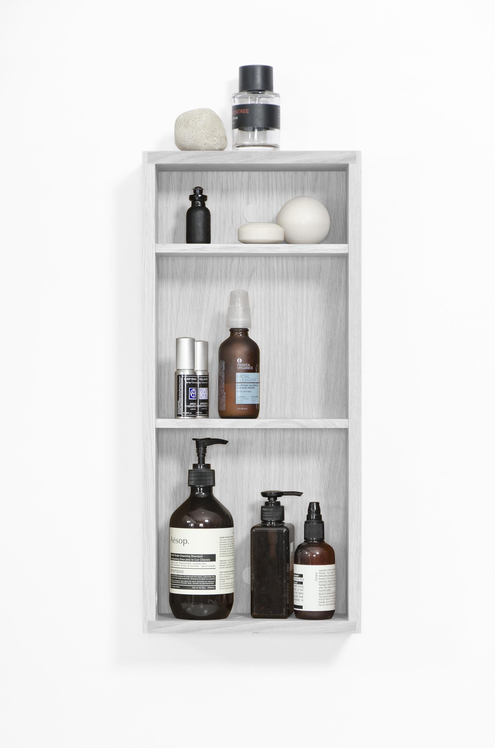 The Slimline box shelf is designed to be fixed either next to our best-selling Slimline 550 bathroom cabinet, or in-between two Slimline 550 bathroom cabinets. The box shelf extends your storage opportunities offering flexibility. For wider wall spaces this is an elegant way to create a suite of matched designs.