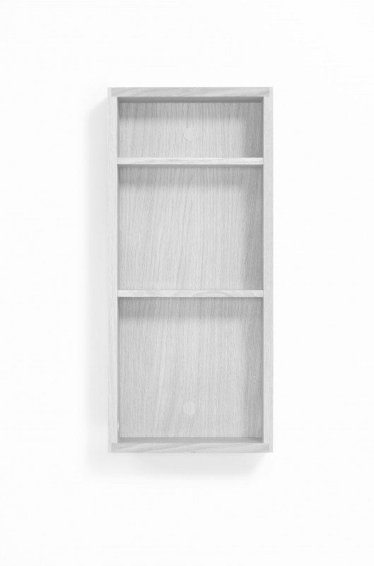 Slimline box shelf is made from sustainably harvested, American white oak and oak veneers, selected for their beautiful grain pattern and traditional hardwood durability. All edges look crisp but are carefully hand sanded to make them soft to the touch. Finished with a smooth, matt white tinted, water resistant lacquer. Design by Lincoln Rivers.