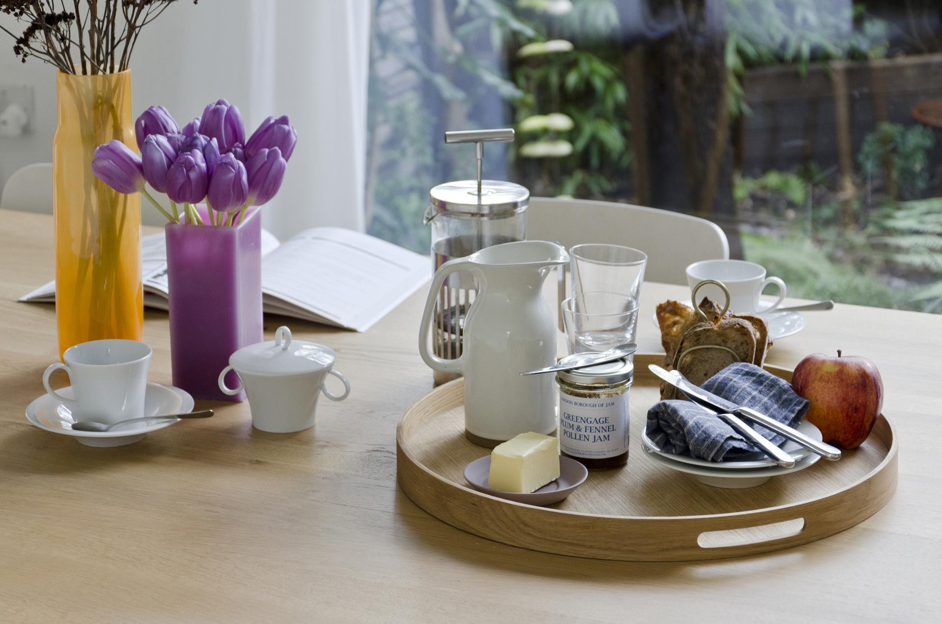 The tray has two slotted handles for portability and a slim lip edge to stop spills and prevent things sliding off. Finished with a matt lacquer to protect against stains, it’s both hardwearing and stylish.