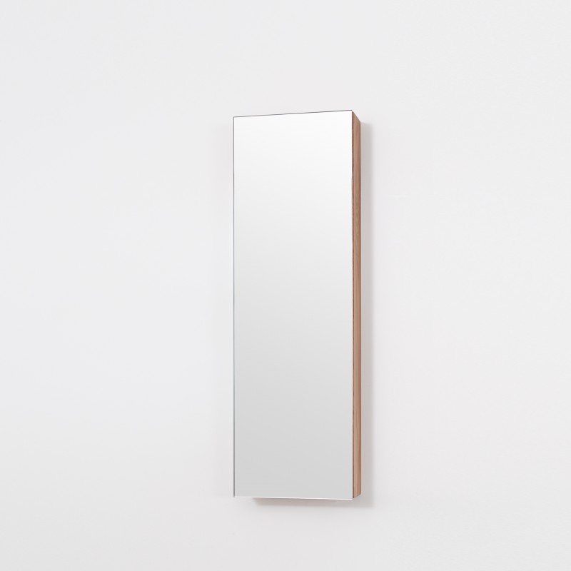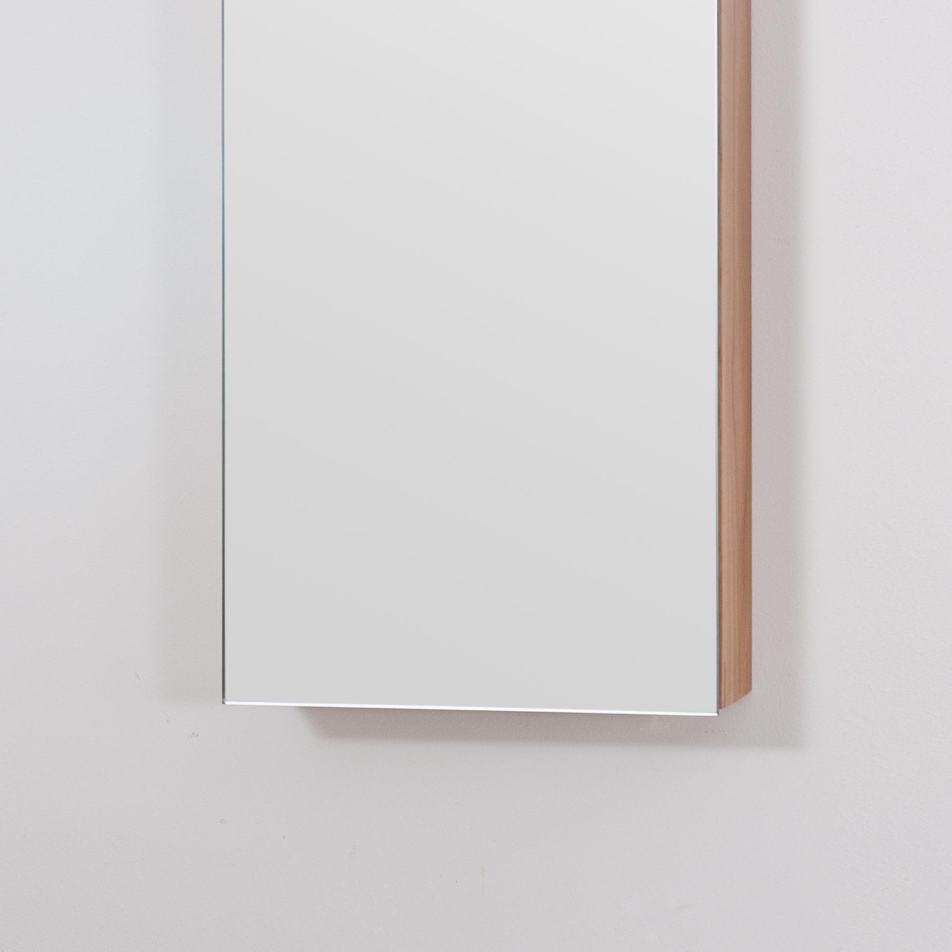 Zone 800 is a slim, vertical bath cabinet for those corners and walls where a more conventional size will not fit. The door front is a conventional polished edge mirror but mounted inside there’s a special times five magnification mirror to give a much bigger close up view. Extending hinges mean the door opens wider so no awkward positioning needed to use the magnifying mirror.