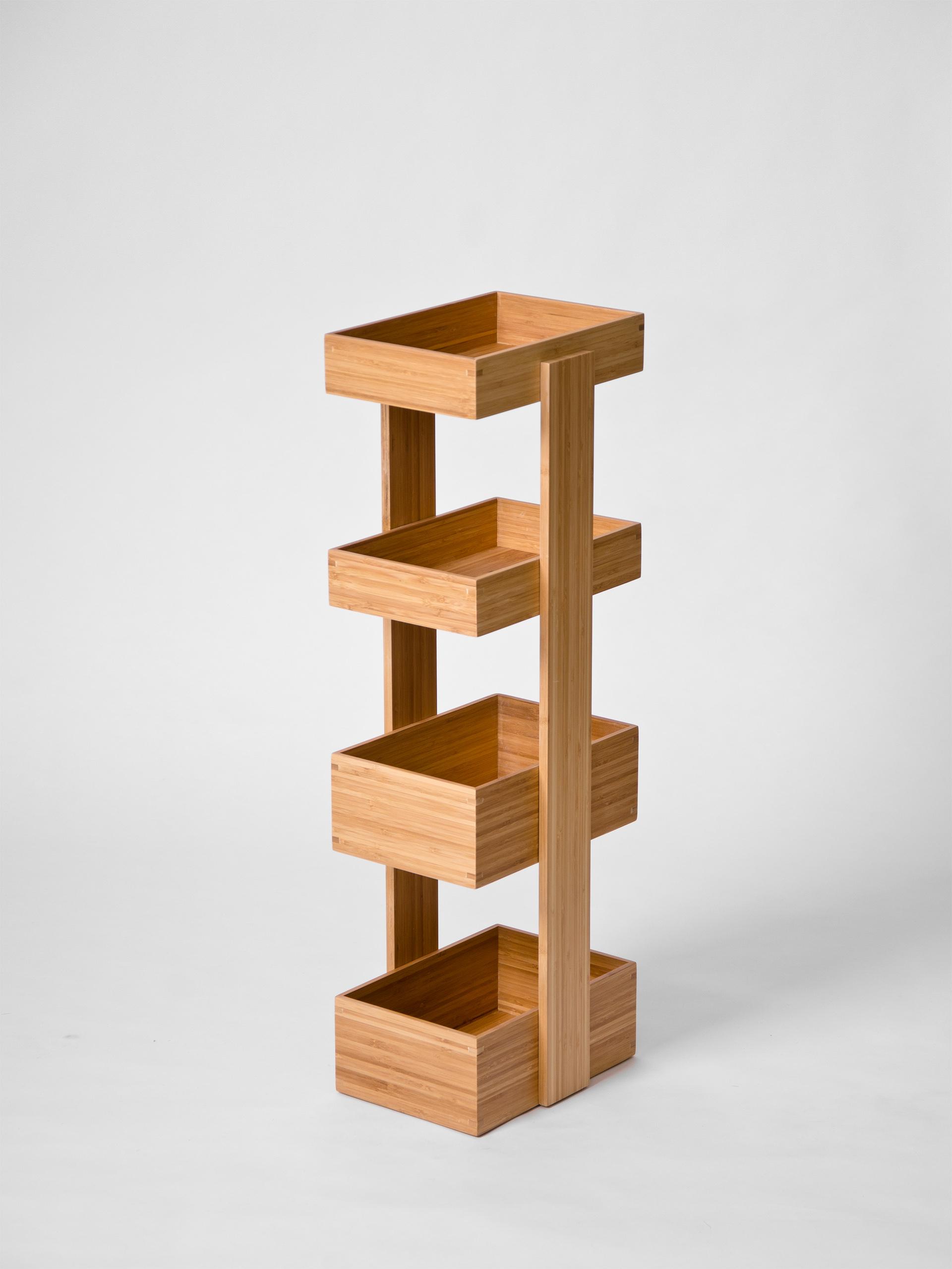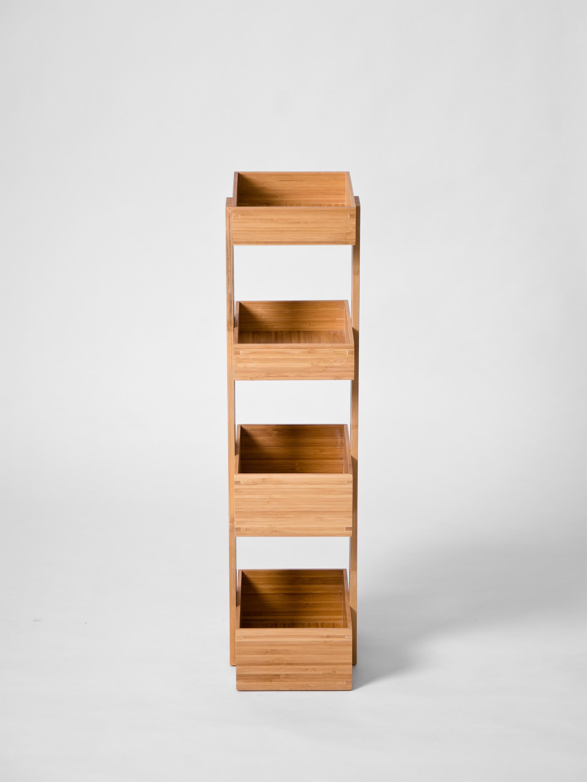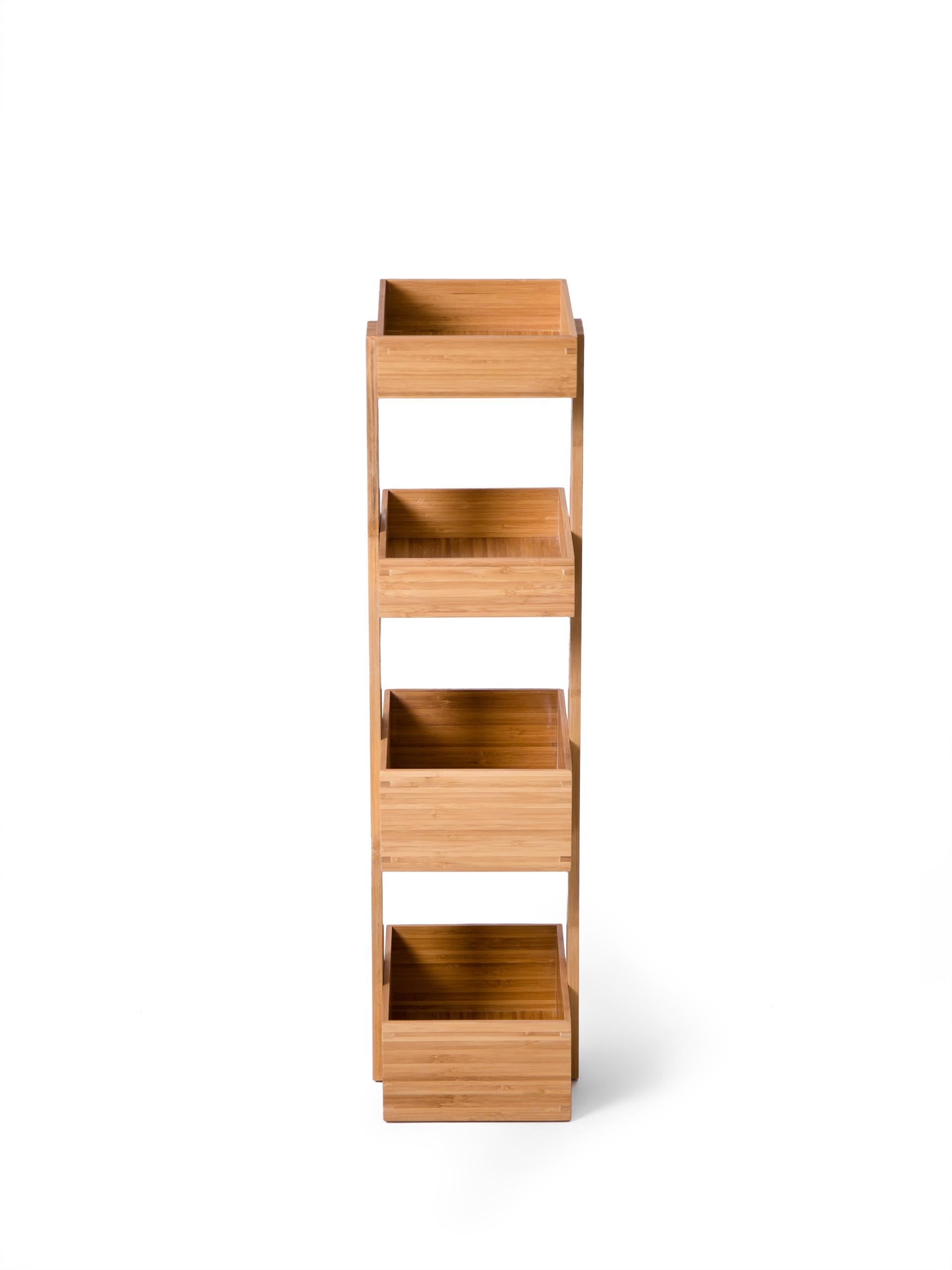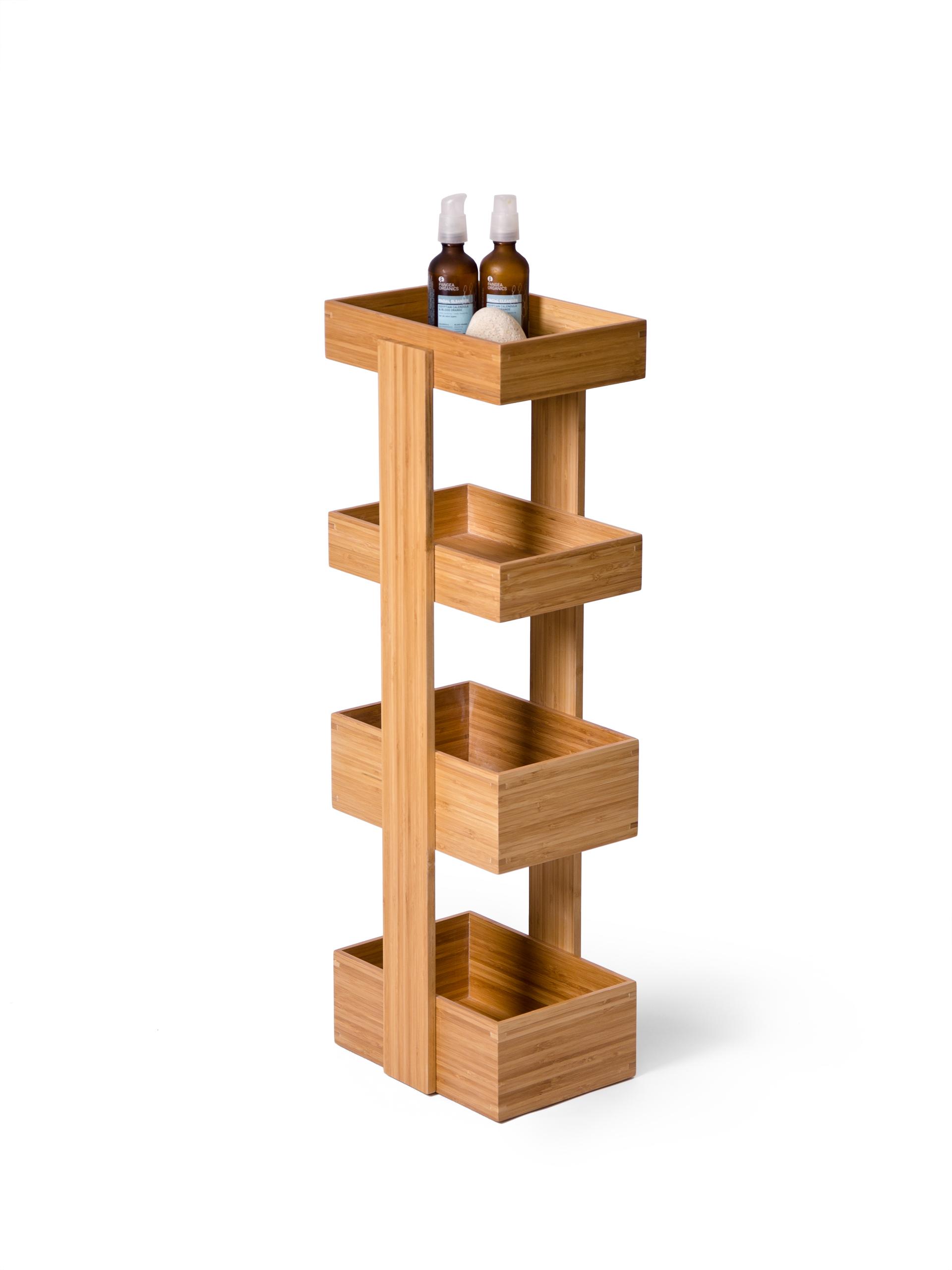 Supremely functional, Arena caddy provides two slim trays at the top and two deeper storage trays below; ideal for rolled towels, body lotions, toiletries and gels. Bamboo trays are finely detailed. The self-contained design can be moved to the most convenient position, slip beside a washbasin or next to a shower screen.