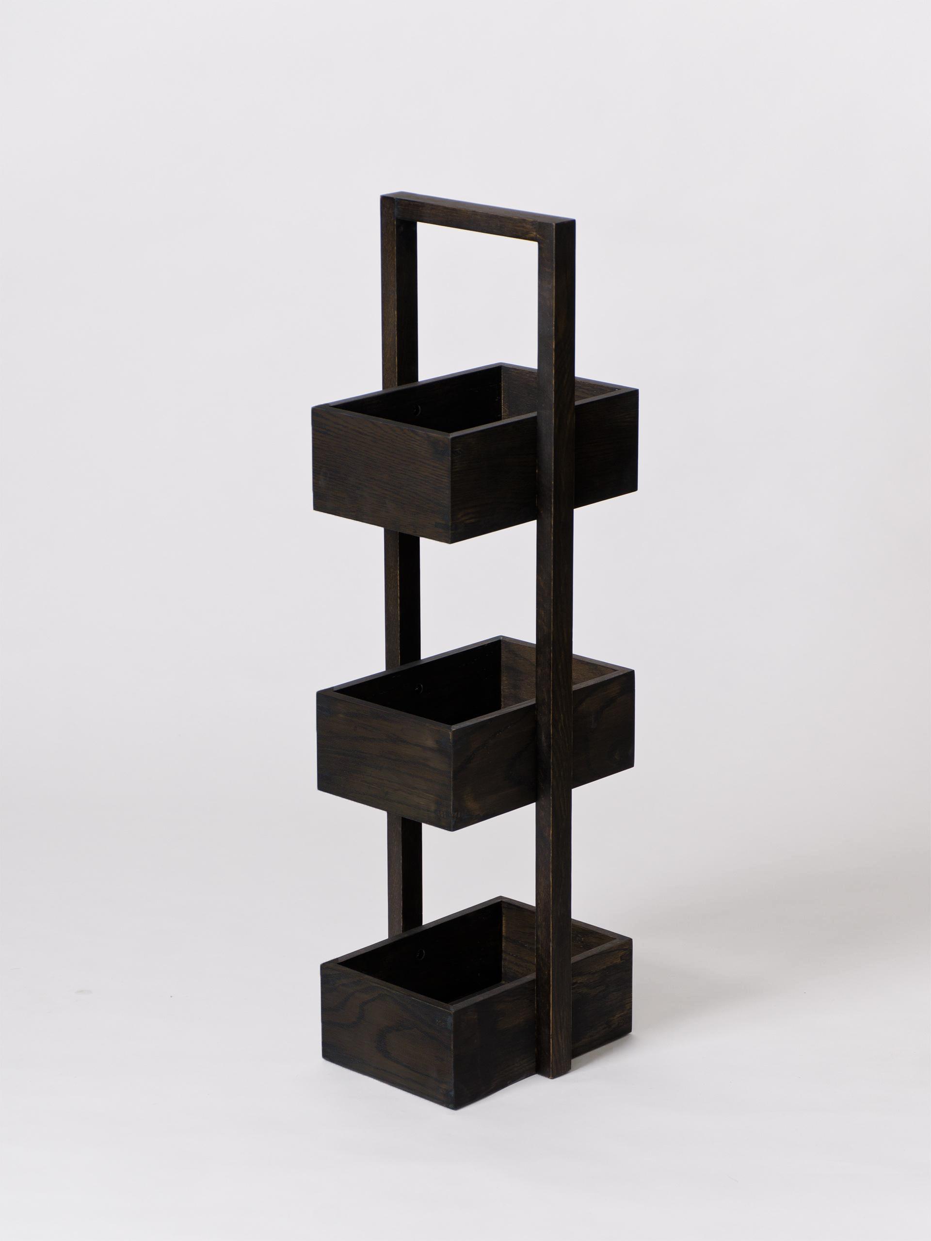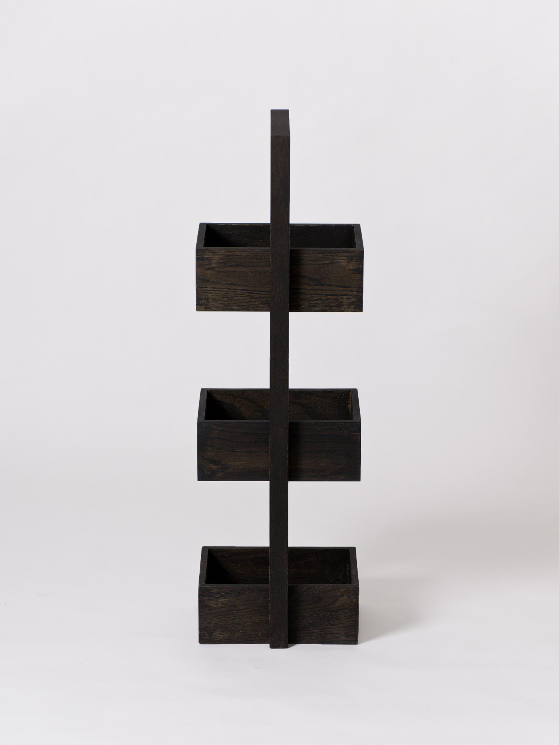 Made from sustainably harvested dark stained American white oak and oak veneers, selected for their depth of colour, beautiful grain pattern and traditional hardwood durability. All edges look crisp but are carefully hand sanded to make them soft to the touch. Finished with a matt, water resistant lacquer. Silicone rubber feet stop it slipping. Design by Lincoln Rivers.