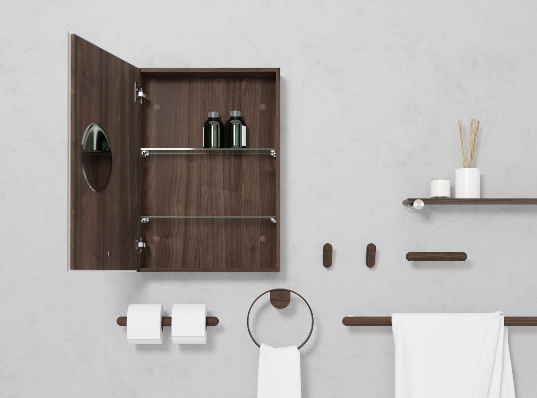 ‘Yoku’ - meaning bath in Japanese is a refined collection of bathroom furniture and wall fittings. The rounded, smooth wood parts compliment perfectly the precision engineered, matt stainless steel fixings.