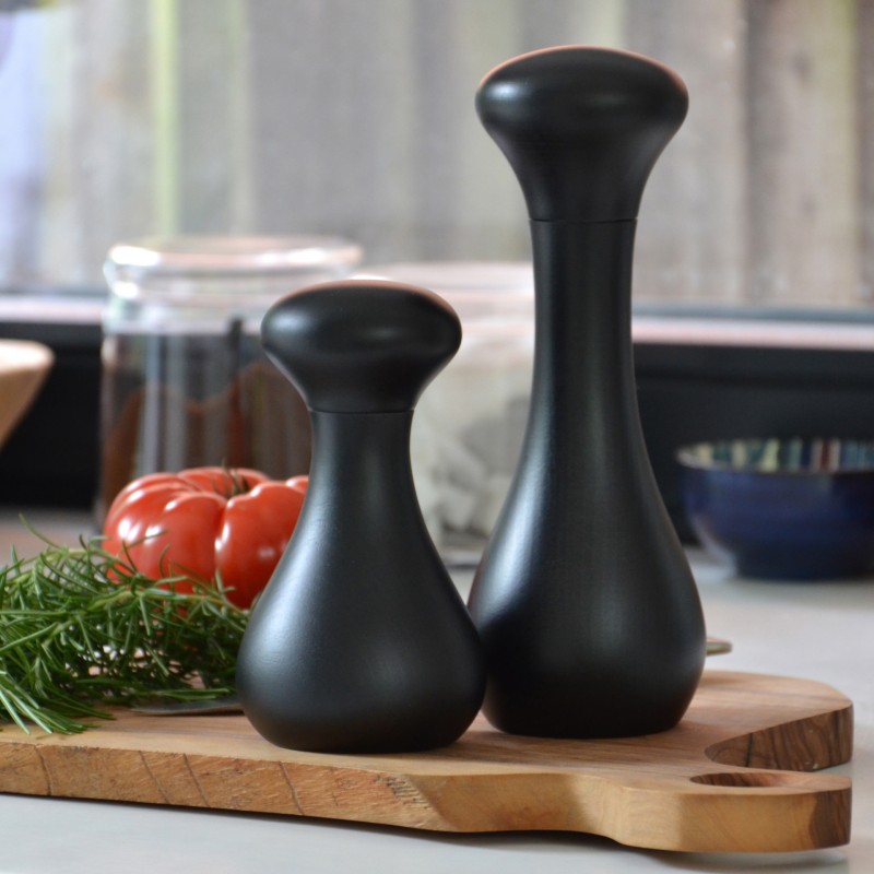 Using a single block of un-laminated, stained black beech, we keep the integrity of the grain and improve the grinders appearance. Based in Europe, our production facility is situated in the middle of a beech forest. The woodland is managed by the Forestry Stewardship Council and has been sustainably harvested since the early 1700's.