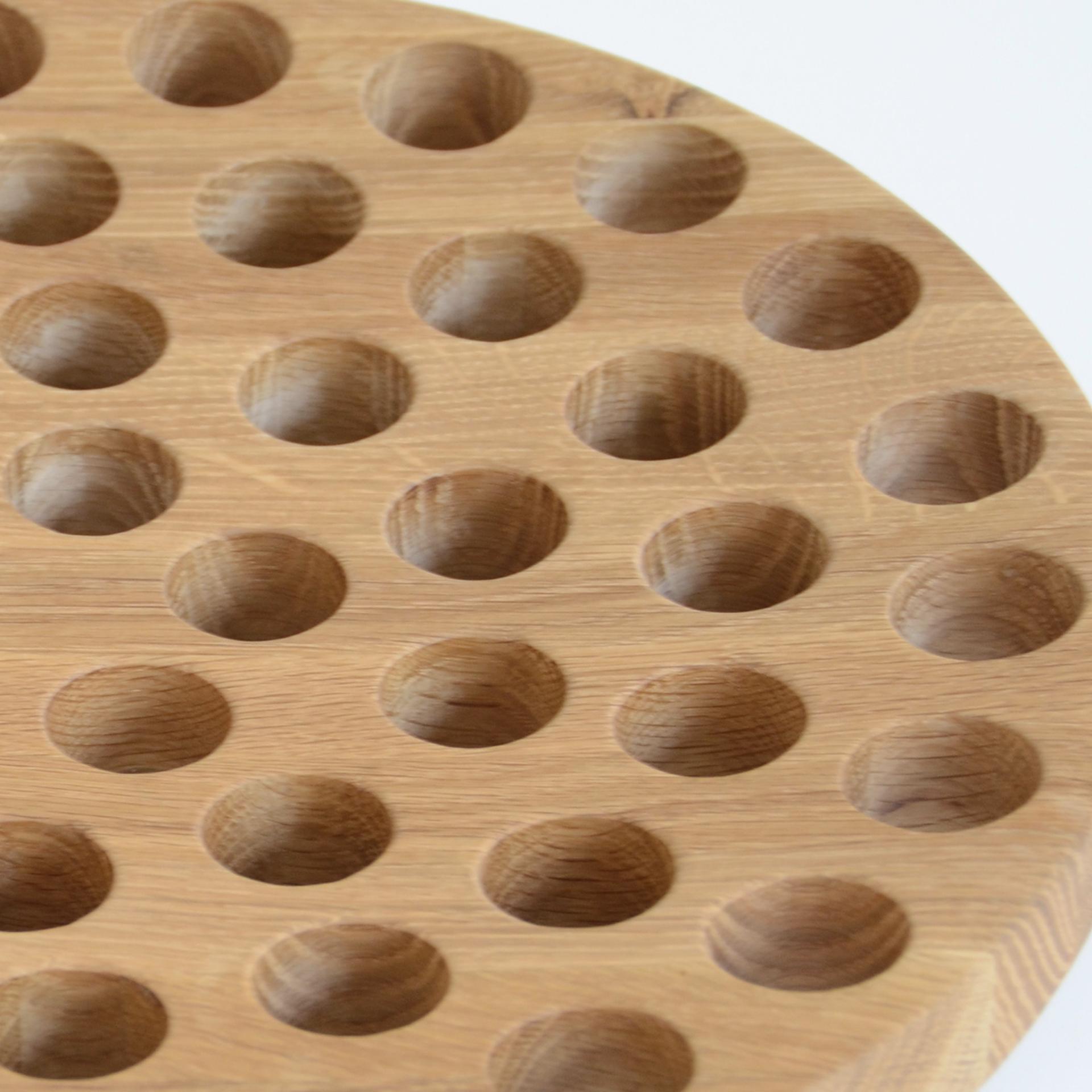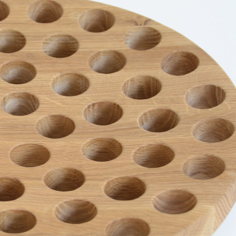 Made from sustainably harvested natural American white oak, selected for its warm colour, beautiful grain pattern and traditional hardwood durability. All edges look crisp but are carefully hand sanded to make them soft to the touch. Finished with a matt, water resistant lacquer. Design by Lincoln Rivers and Huyulin Hu.