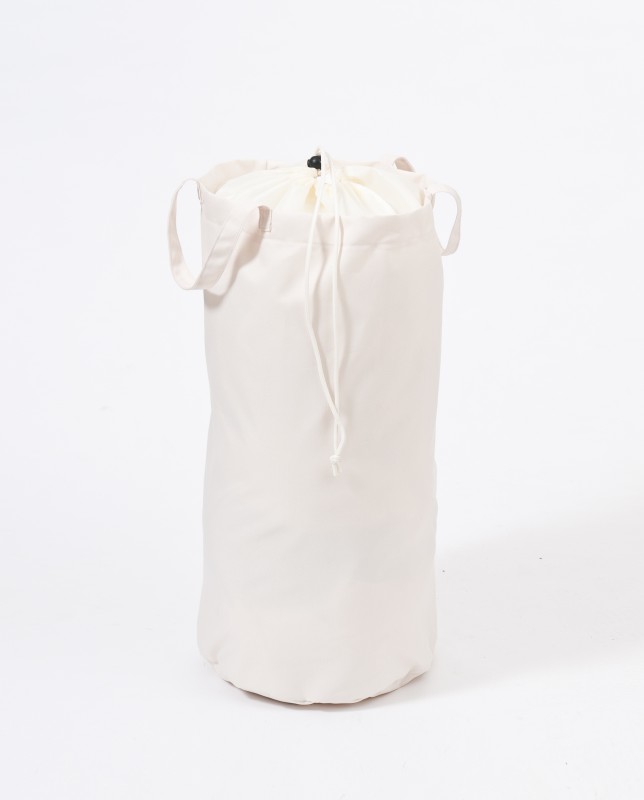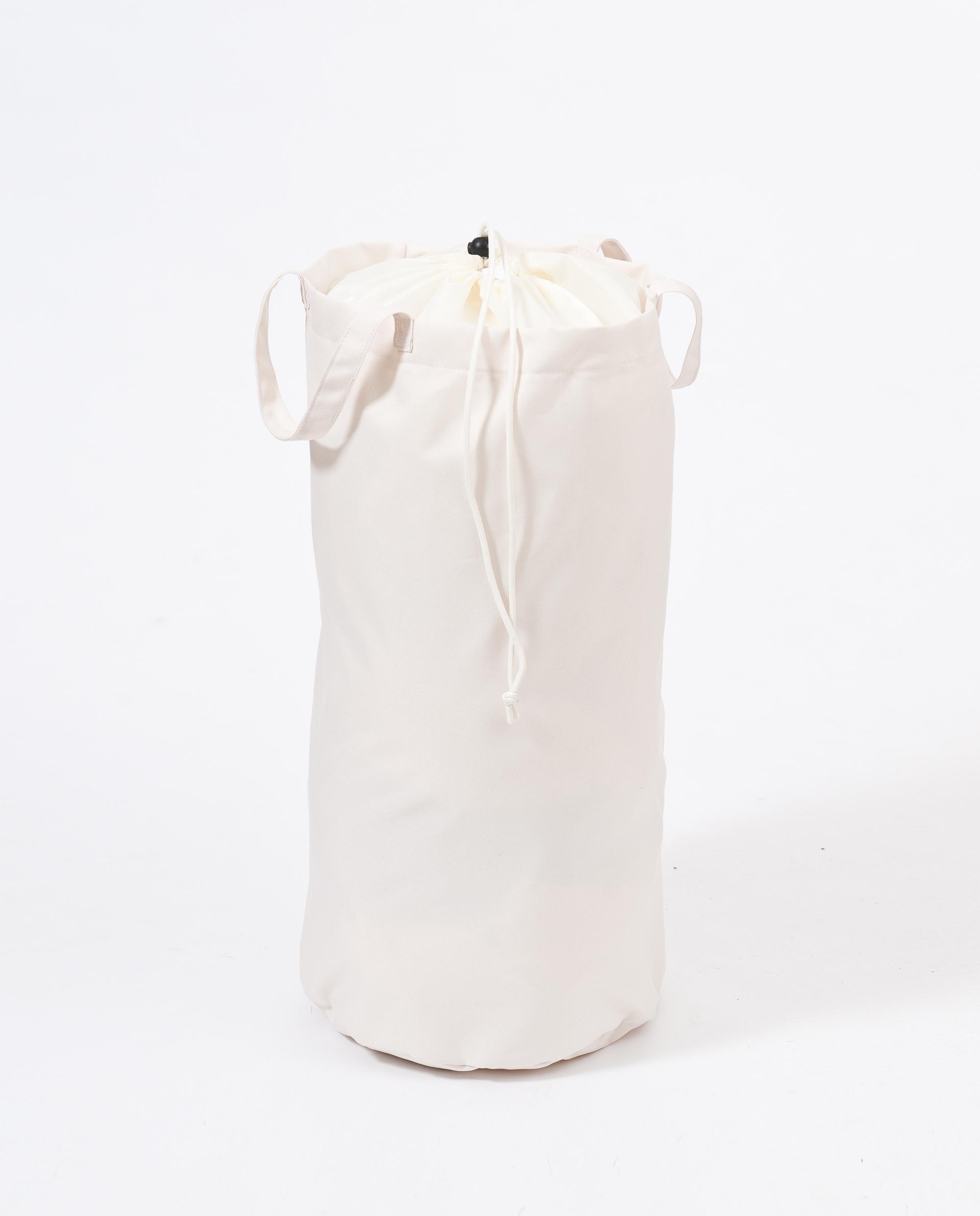 The bag holds its shape; two handles lift it easily in and out, no wrestling required. For privacy, close the top by pulling the thick pull tie cord.