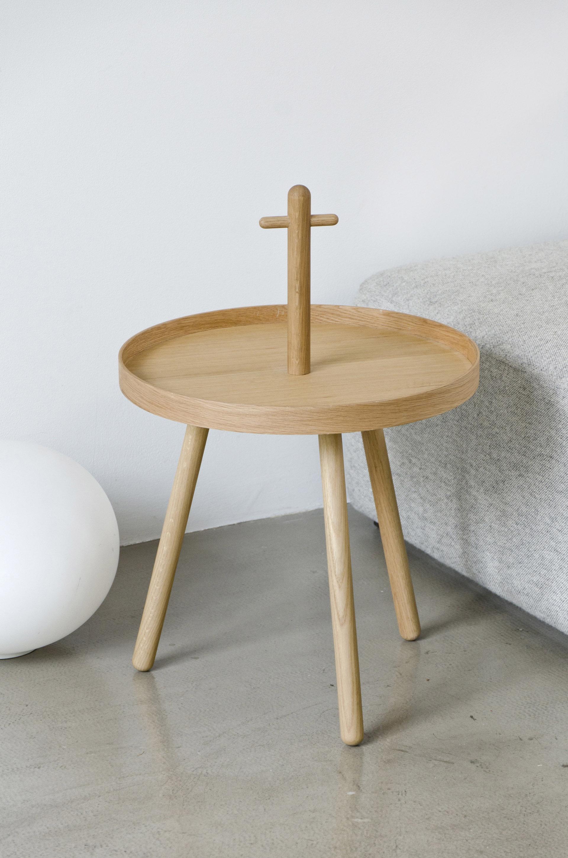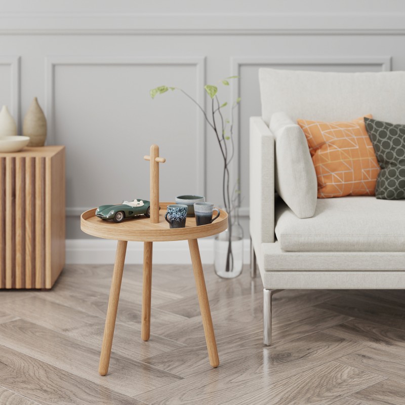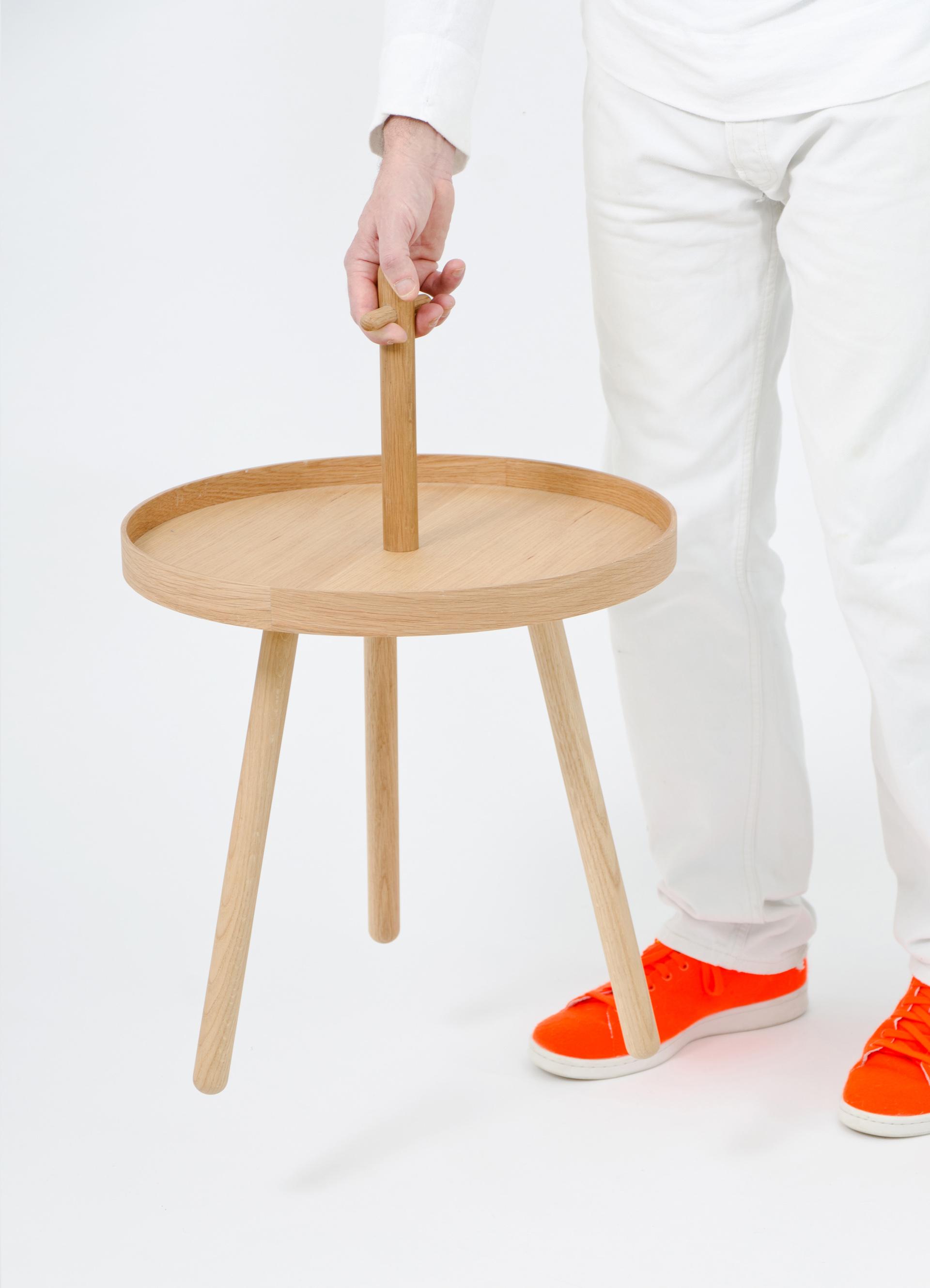 Pick Me Up table combines contemporary style with practicality. The feature handle makes it easy to move from one place to another. It’s a handy side table to use when the occasion arises - a place for snacks and drinks while entertaining friends and when they leave, move it out of the way. It’s also a convenient place for keeping phones, wallets and keys. The slim lip edge stops spills and prevents things from sliding off. Three legs provide great stability. Finished with a matt lacquer to protect against stains, it’s both hardwearing and stylish.