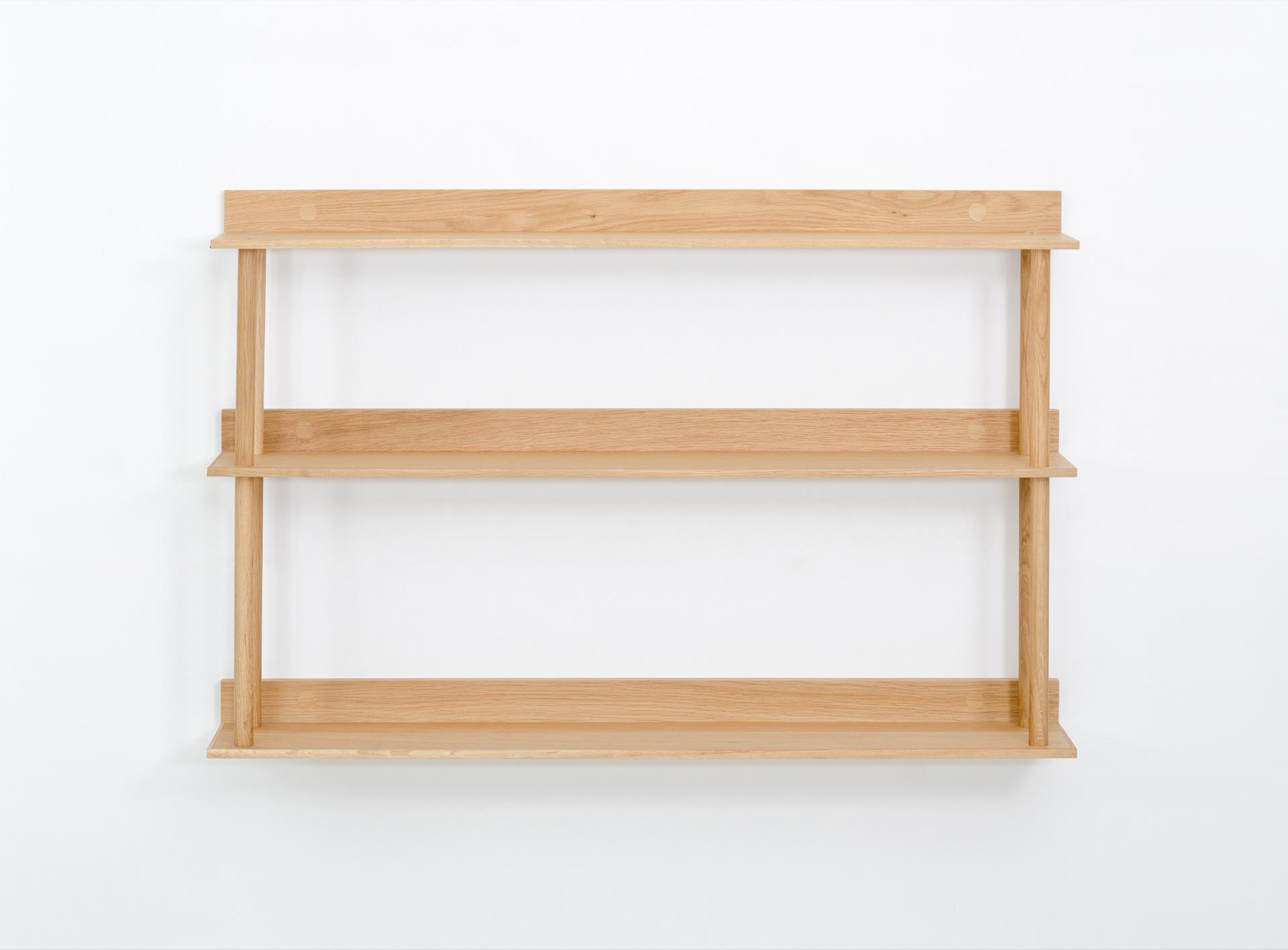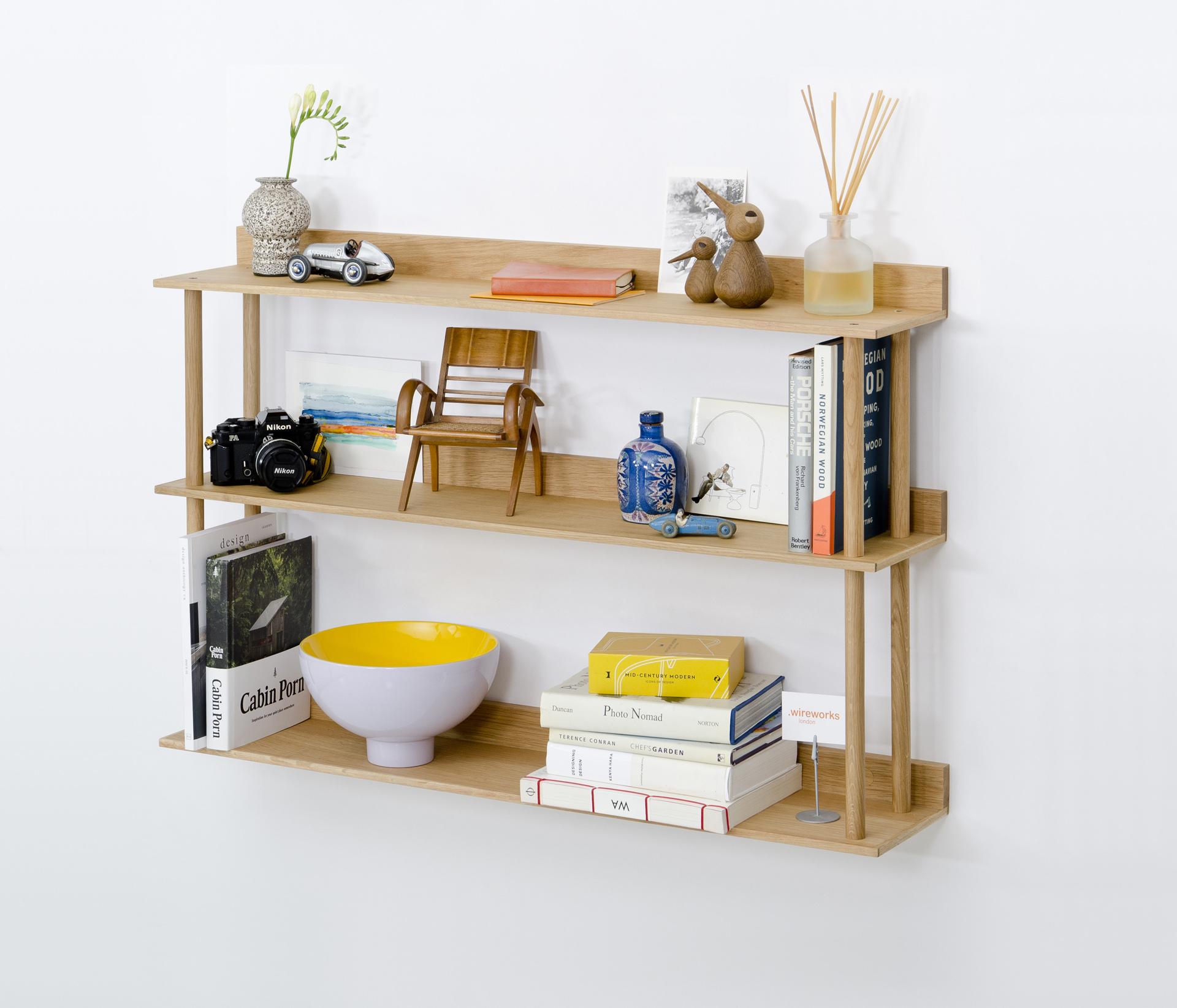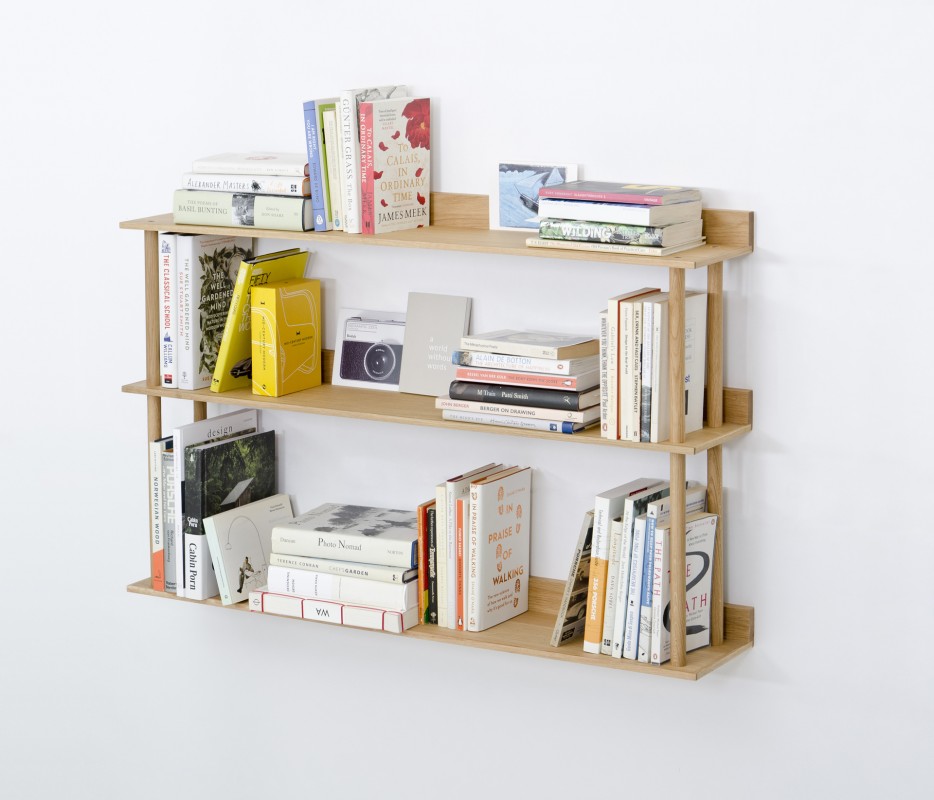 The three linked shelves are spaced 25 cm and 31cm apart providing plenty of room to store and display books, objects and photographs. The staggered spacing provides a better display for both smaller and larger items.