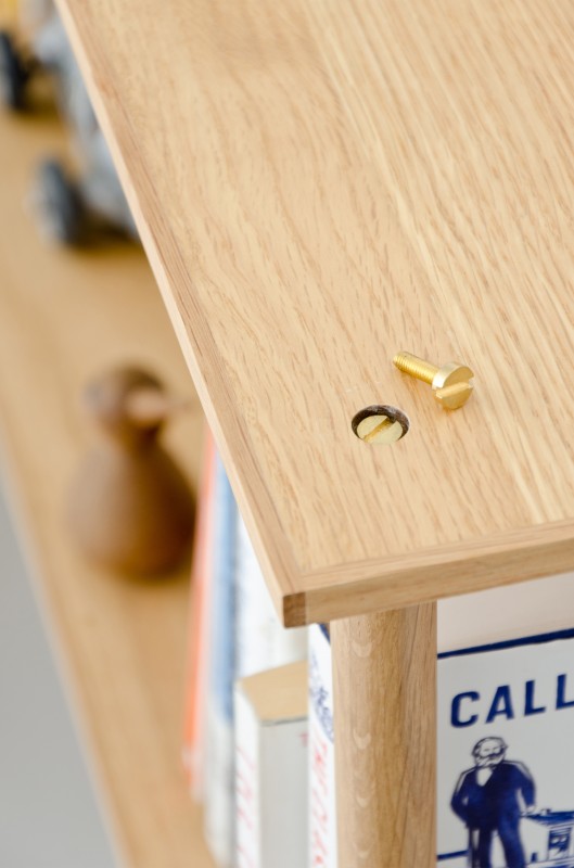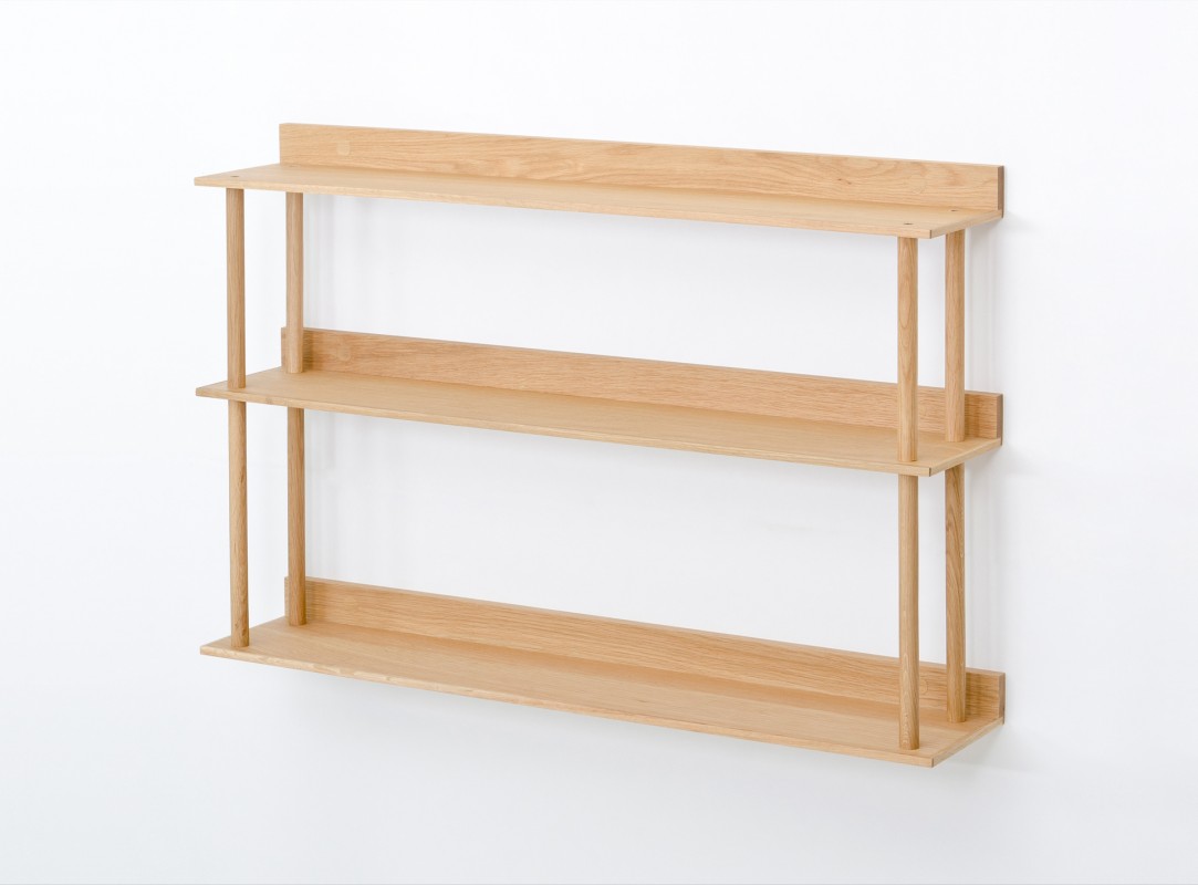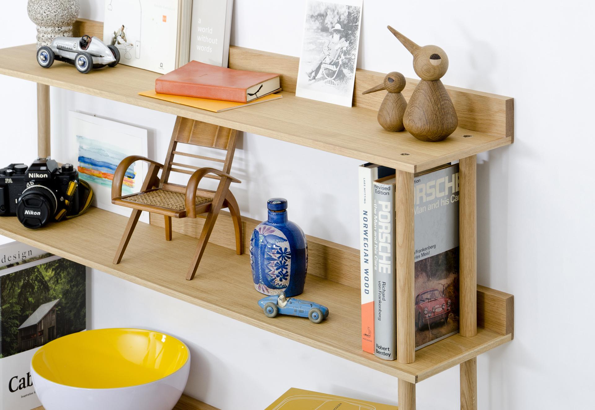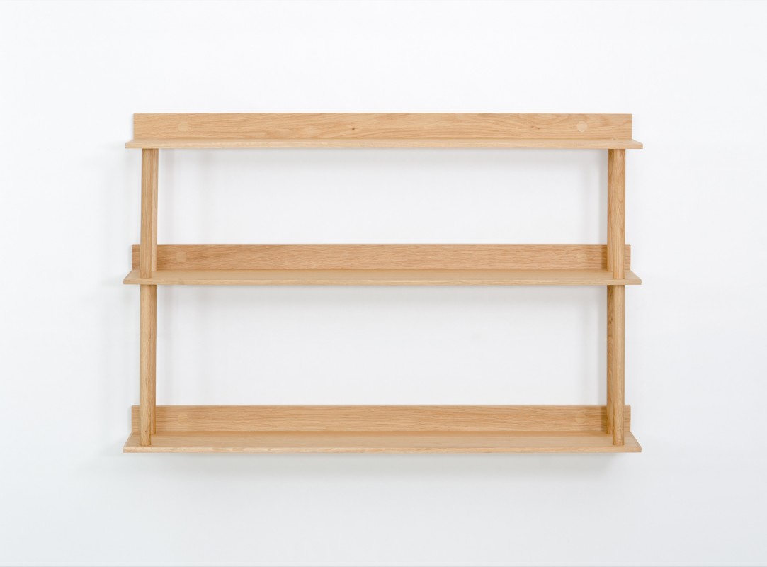 The three linked shelves are spaced 25 cm and 31cm apart providing plenty of room to store and display books, objects and photographs. The staggered spacing provides a better display for both smaller and larger items.
