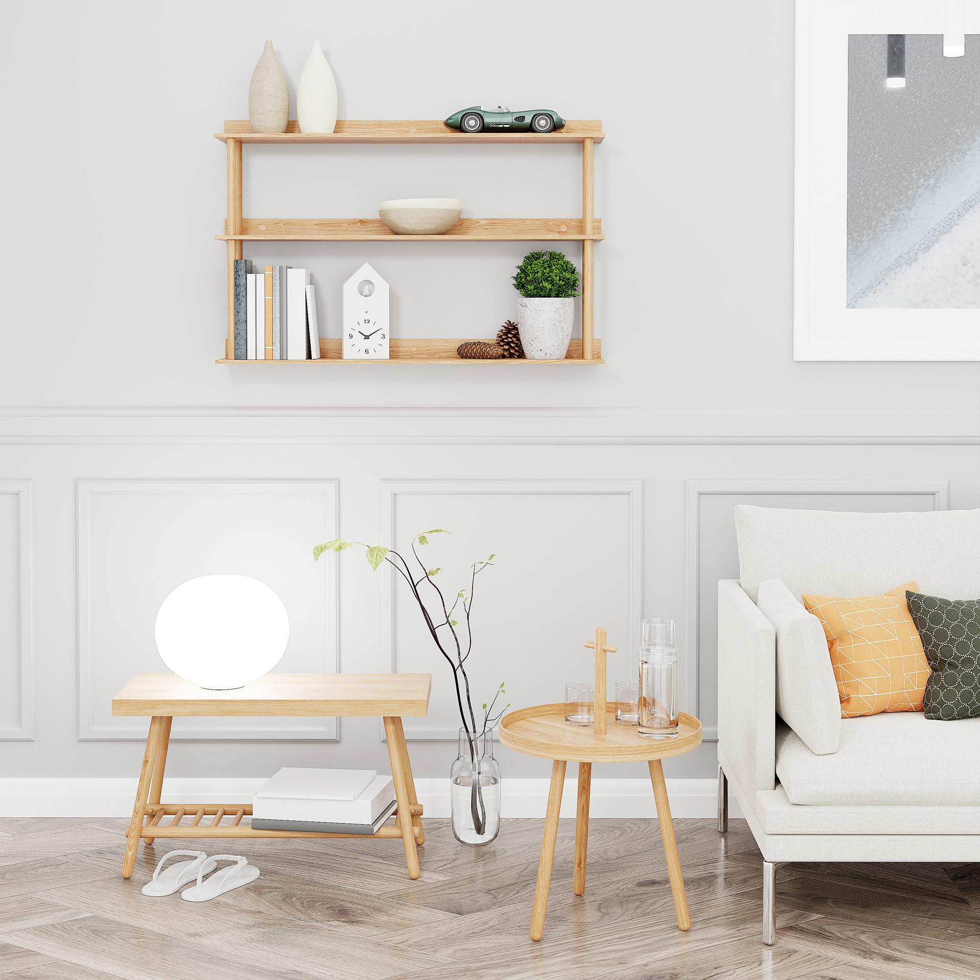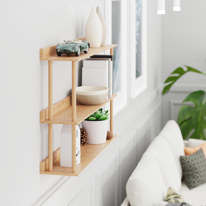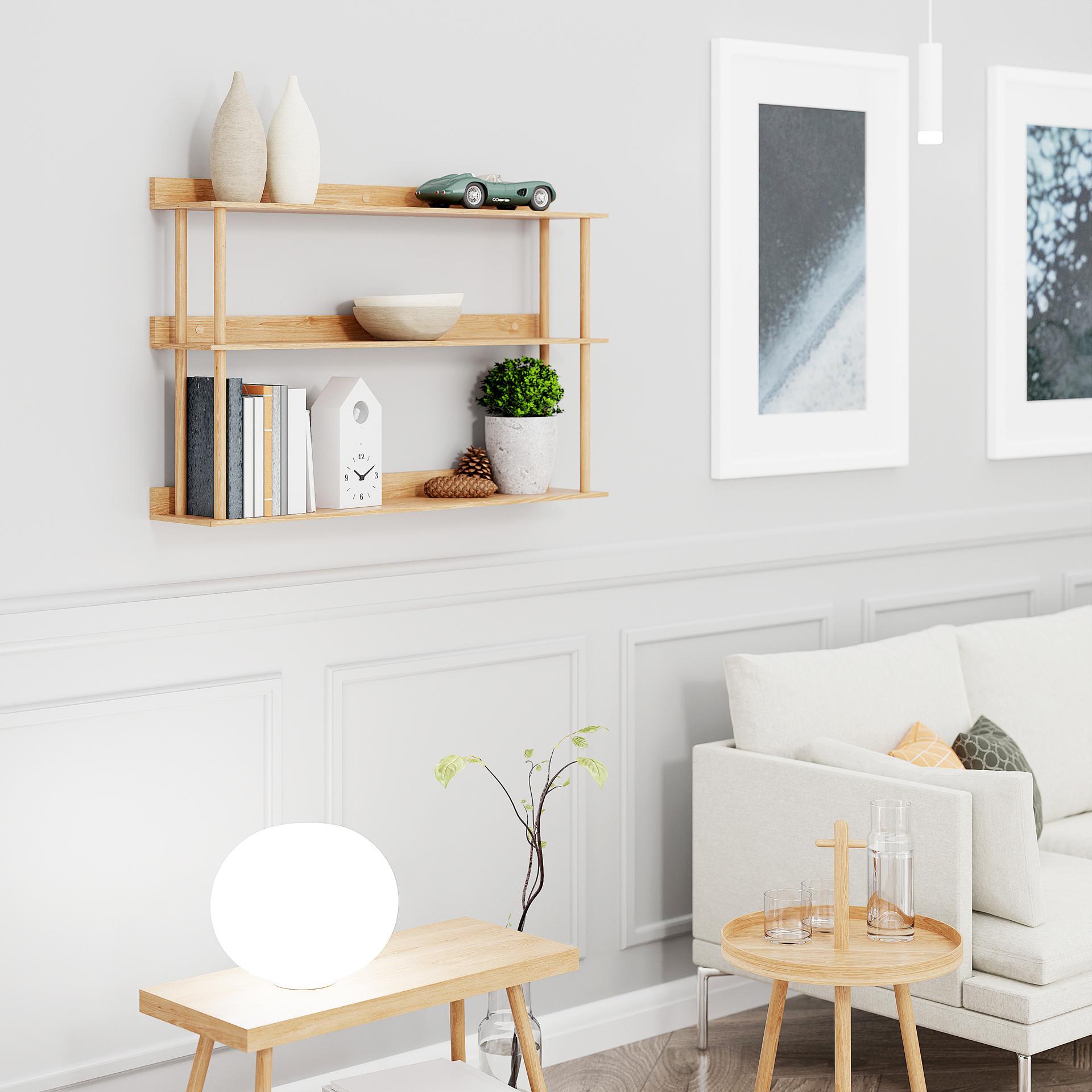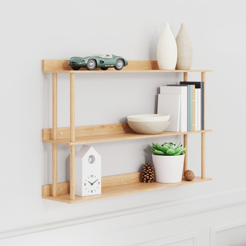 Between the shelves, pillar support ends stop things falling off and make perfect bookends. Triple wall mounting points for each shelf ensures a secure fix.