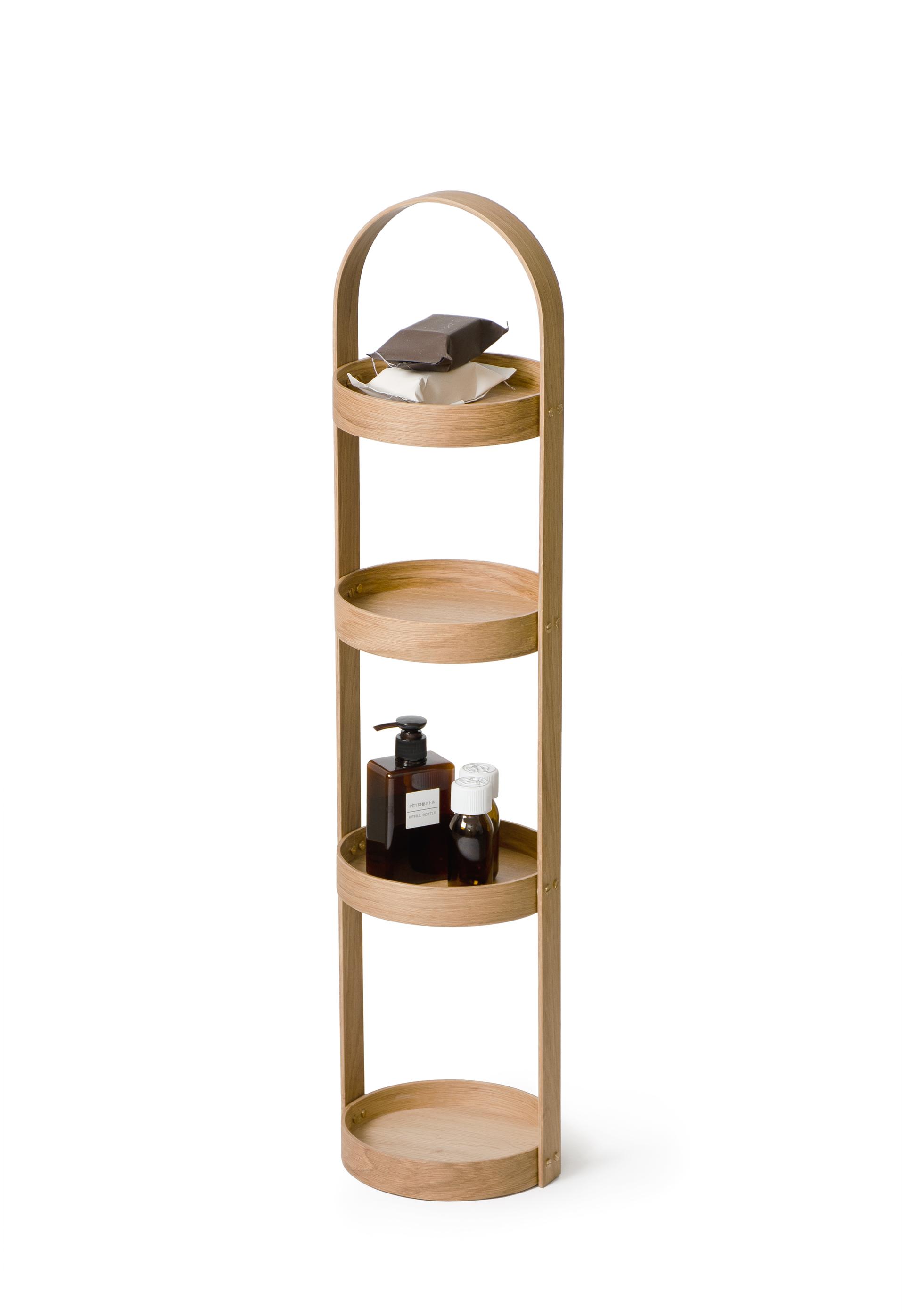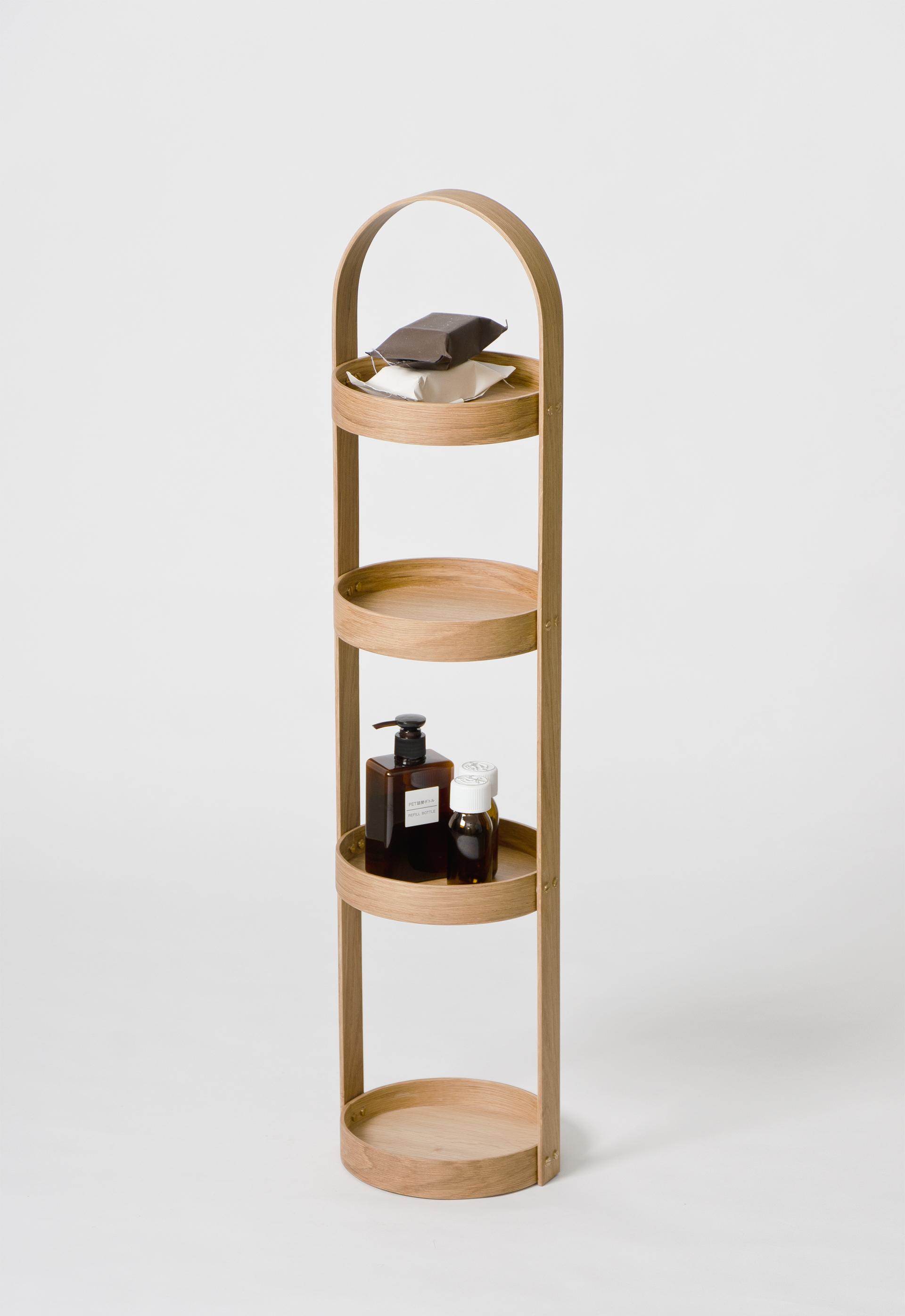 A harmony of curves, compact and efficient, 4 tray Mezza round caddy can fit in those smaller spaces. Portable, well proportioned, and with staggered, shallow lipped trays, it provides accessible, functional storage for any environment.