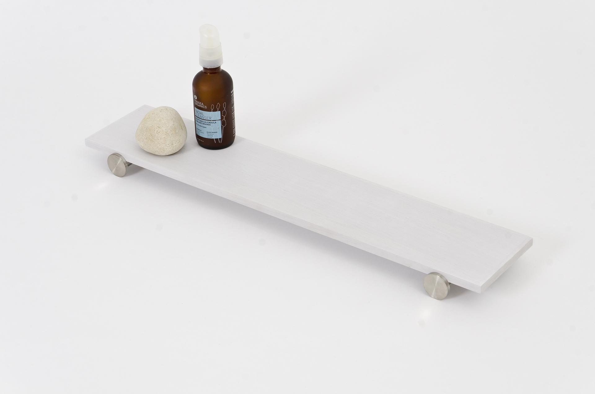 Yoku shelf will holds bottles, creams, a scented candle or incense diffuser. Can be used individually or in multiples, easy to position and ideal for use above a wash hand basin or toilet. Fixings appear to float the shelf away from the wall.