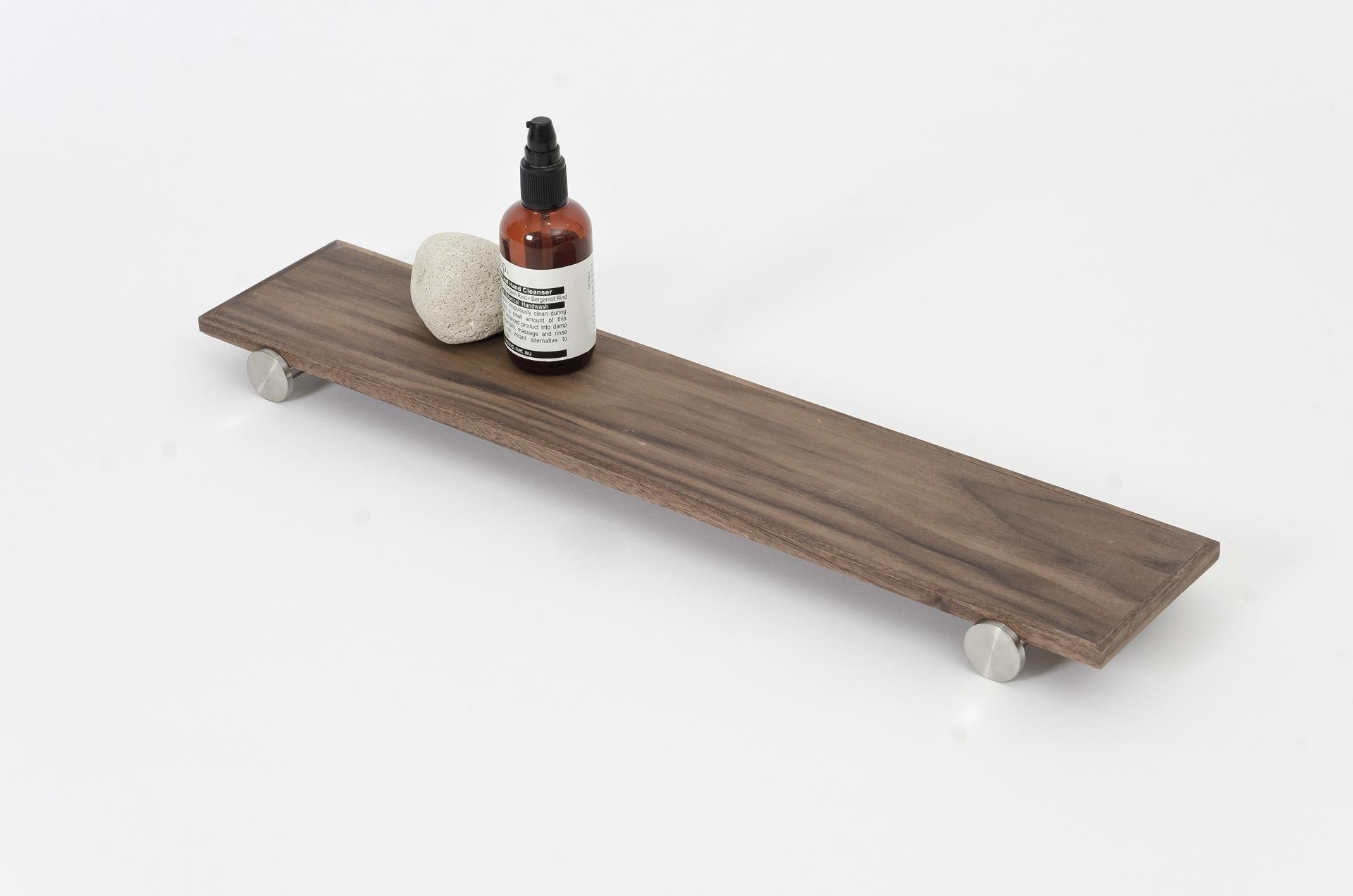 Yoku shelf will holds bottles, creams, a scented candle or incense diffuser. Can be used individually or in multiples, easy to position and ideal for use above a wash hand basin or toilet. Fixings appear to float the shelf away from the wall.