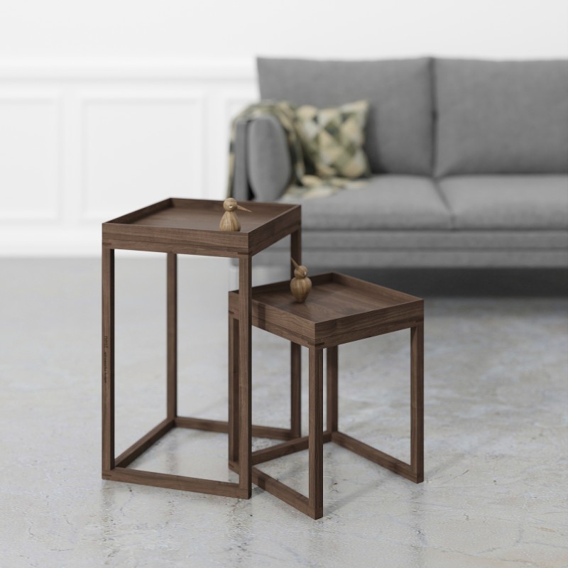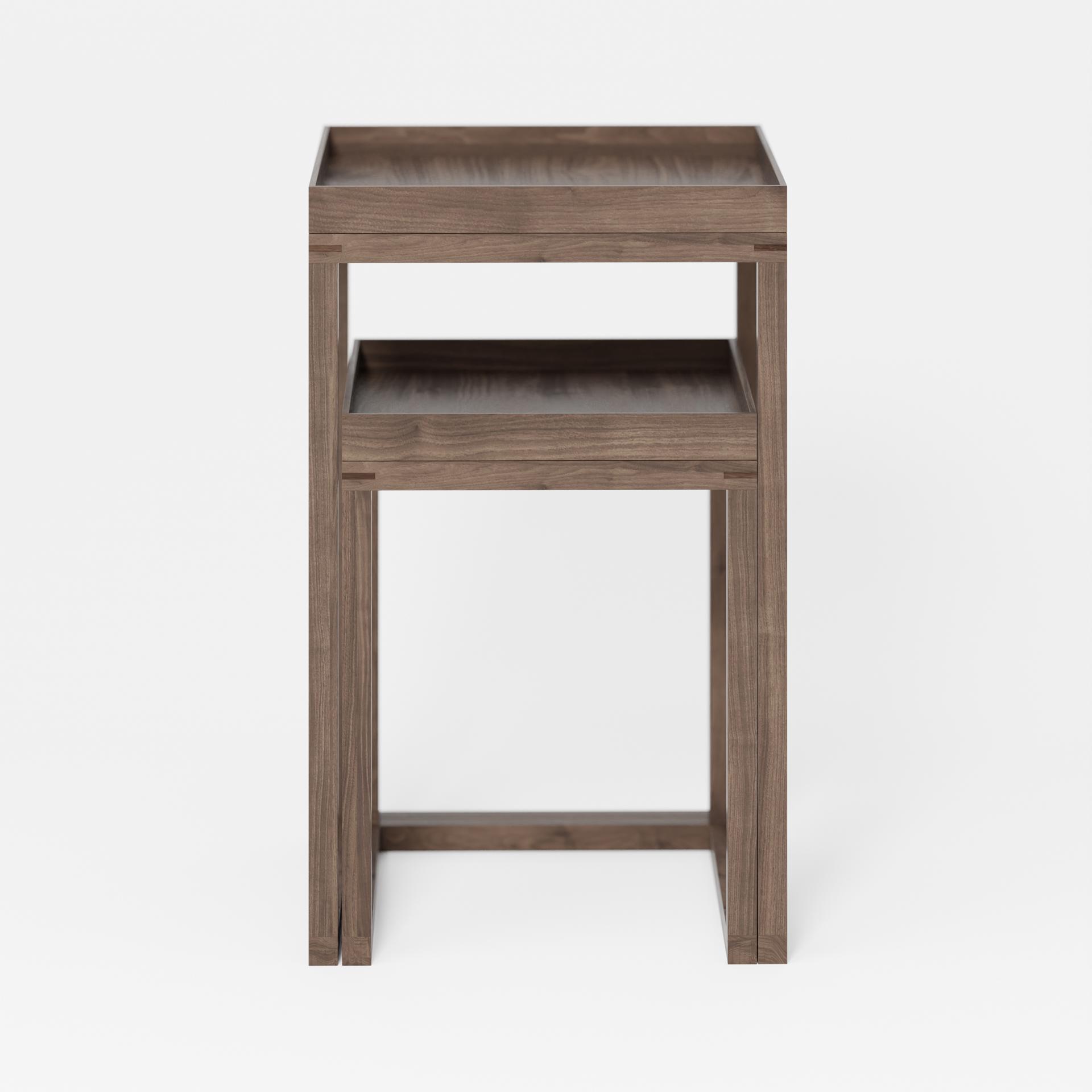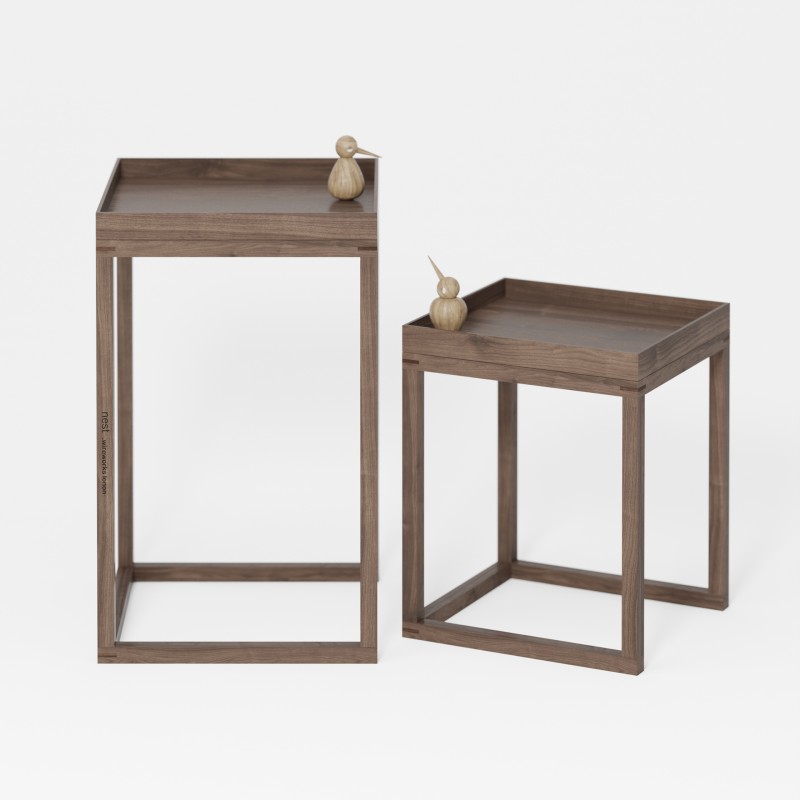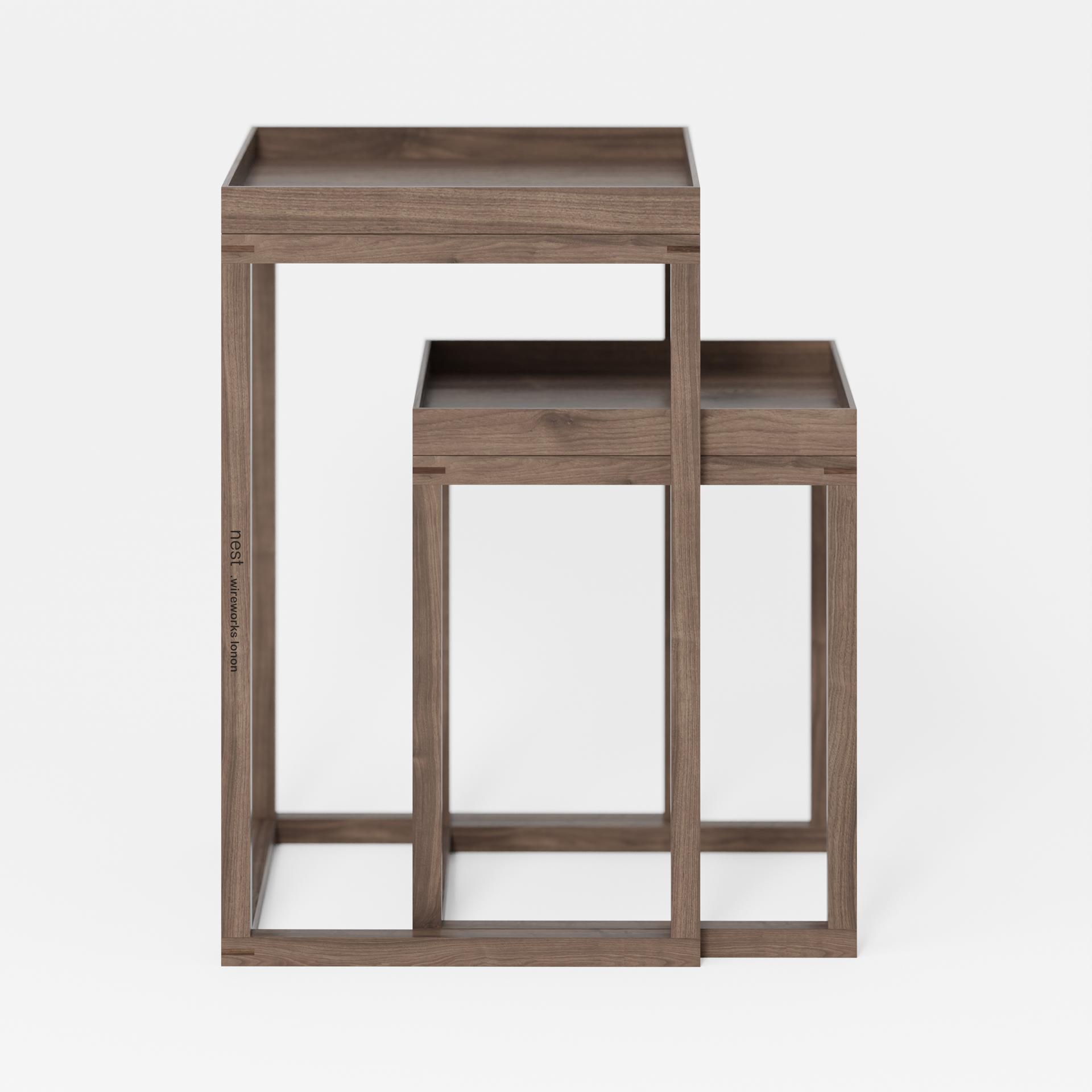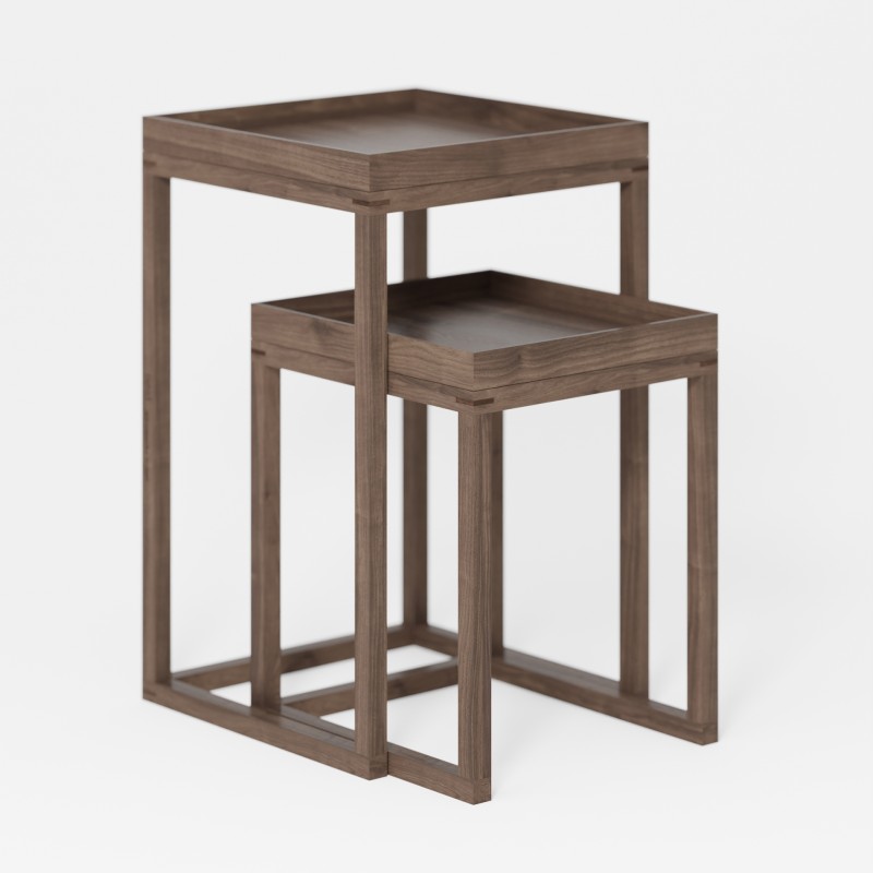 Side tables 'Nest' space saving design store snuggly together one beneath the other and come in handy when a spare table is needed. Lightweight and easy to pull out, an extra table brings added convenience for when unexpected guests drop by. The lipped edge tops stop things slipping off and can be lifted like a tray for serving or clearing away. The removable tops fit flush against the sturdy, solid oak base leg structure.