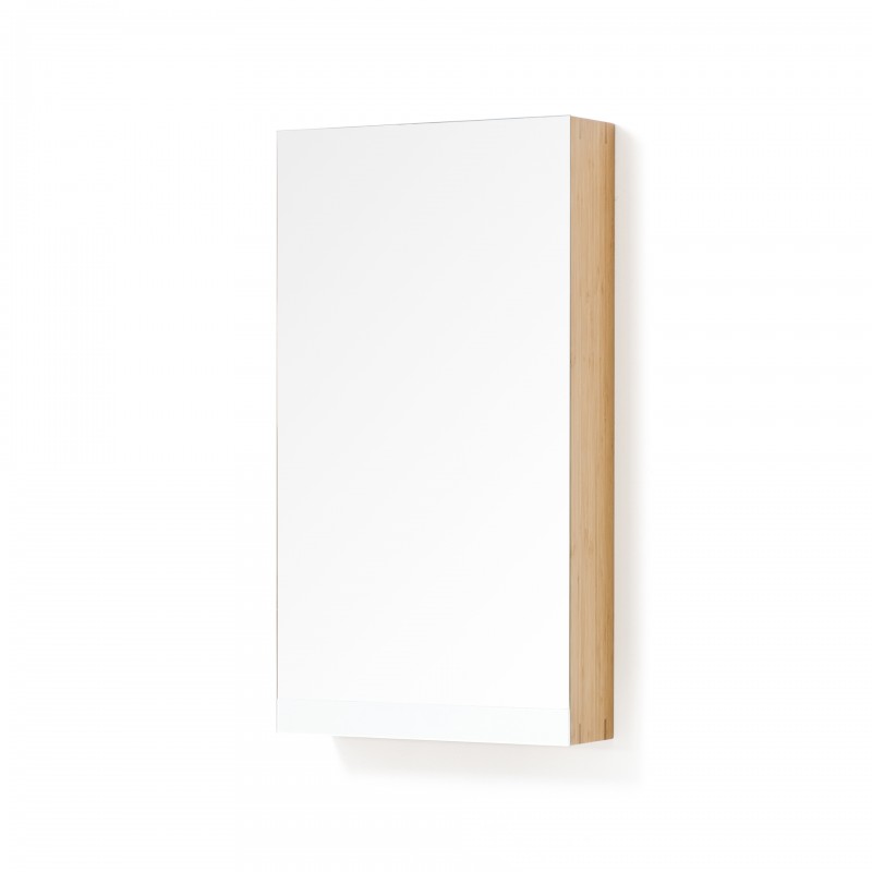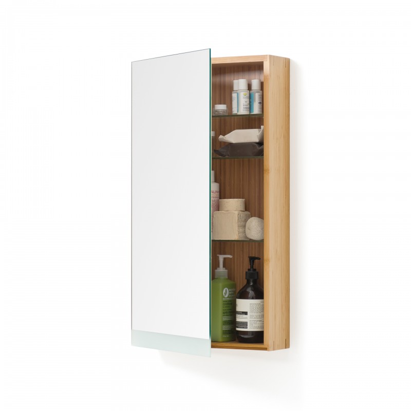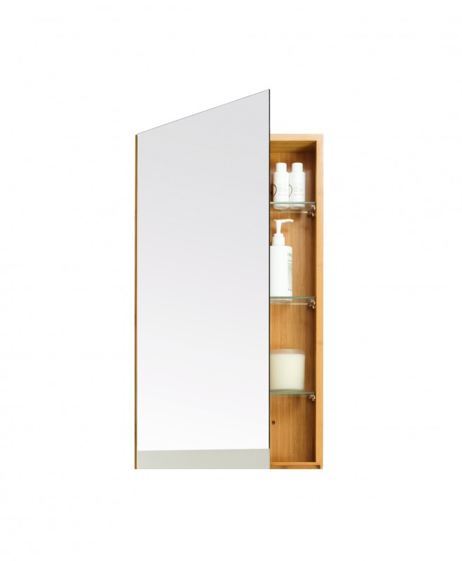 The mirror door fits seamlessly flush to the edge of the smooth bamboo cabinet. The frosted mirror edge feature gives a rich lustre look and will not not pick up finger prints. Inside are three polished glass shelves that can be moved to suite your exact storage requirements. Whether it's taller bottles or slim jars, there is space.