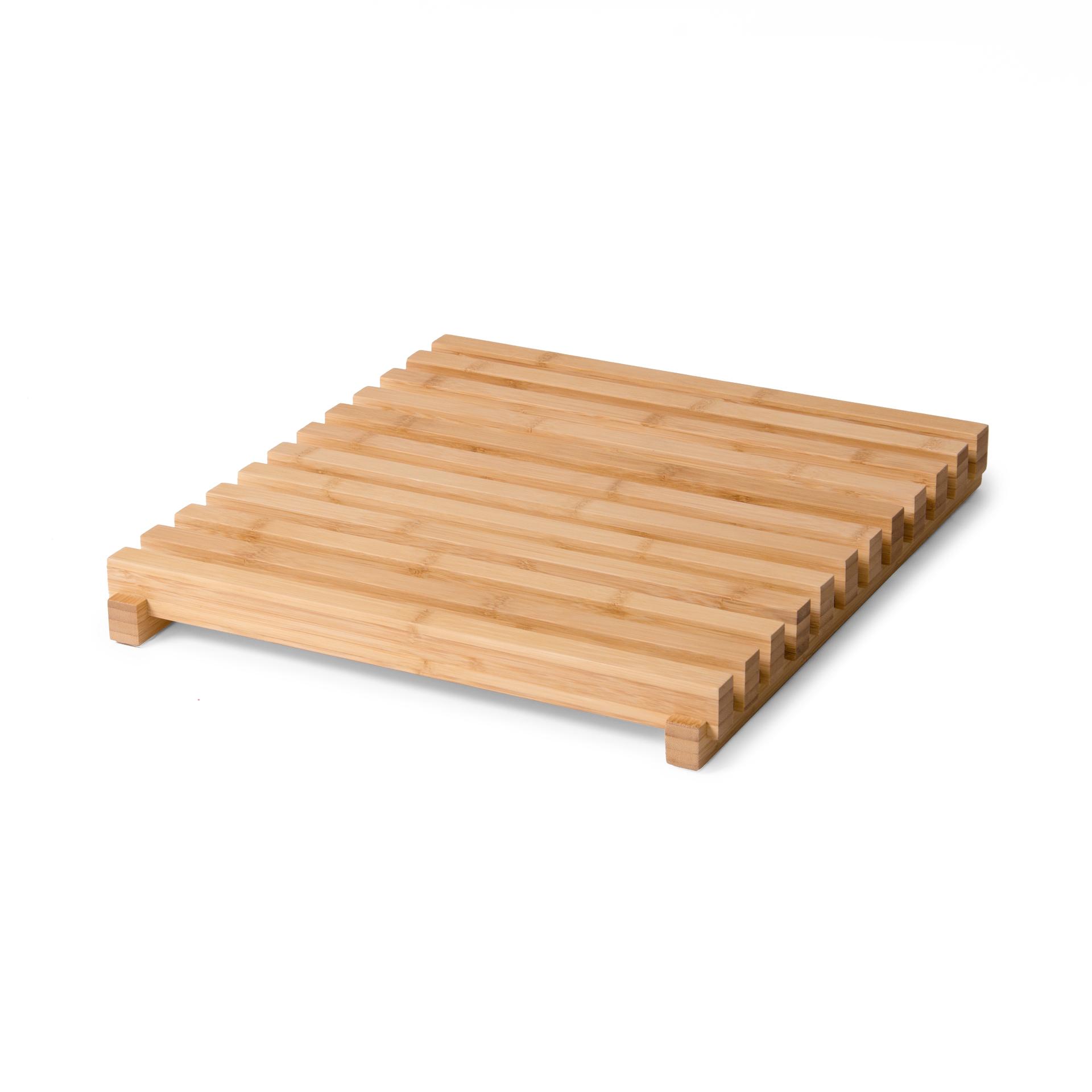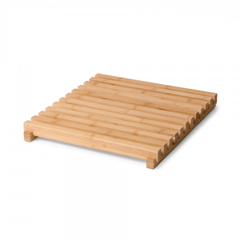 Made from sustainably harvested bamboo, selected for its honey colour, beautiful grain pattern, remarkable durability and strong ecological credentials. All edges look crisp but are carefully hand sanded to make them soft to the touch. Finished with a matt, water resistant lacquer. Silicone feet stop it slipping. Design by Lincoln Rivers.
