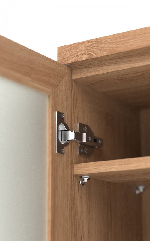 Mezza tallboy features a display tray top with a lipped edge so useful items can be kept safely and close at hand. The door has a rib pattern, acid etched, toughened glass window and concealed finger grip for easy opening. The door is right hand opening but can be switched for left opening (screw holes not provided.) Inside, the cupboard is supplied with two height adjustable shelves suitable for storing bottles, soaps, cosmetic products, cleaners and towels. The door is fitted with soft-close hinges for added luxury.
