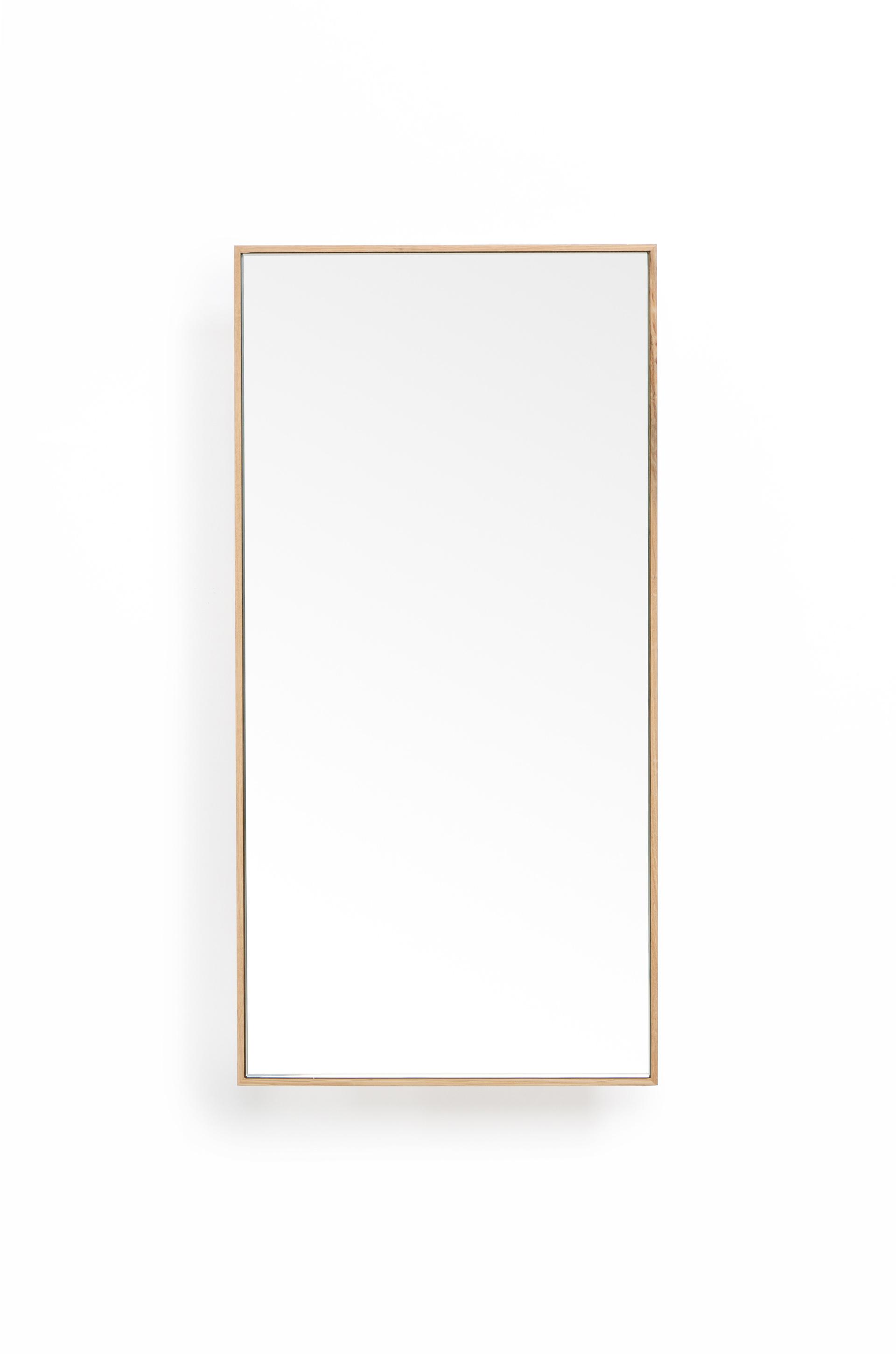 Three tray mirror is made from sustainably harvested natural American white oak and oak veneers, selected for their warm colour, beautiful grain pattern and traditional hardwood durability. All edges look crisp but are carefully hand sanded to make them soft to the touch. Finished with a matt, water resistant lacquer. Simple keyhole installation with hidden fixings gives a seamless look. Design by Lincoln Rivers.