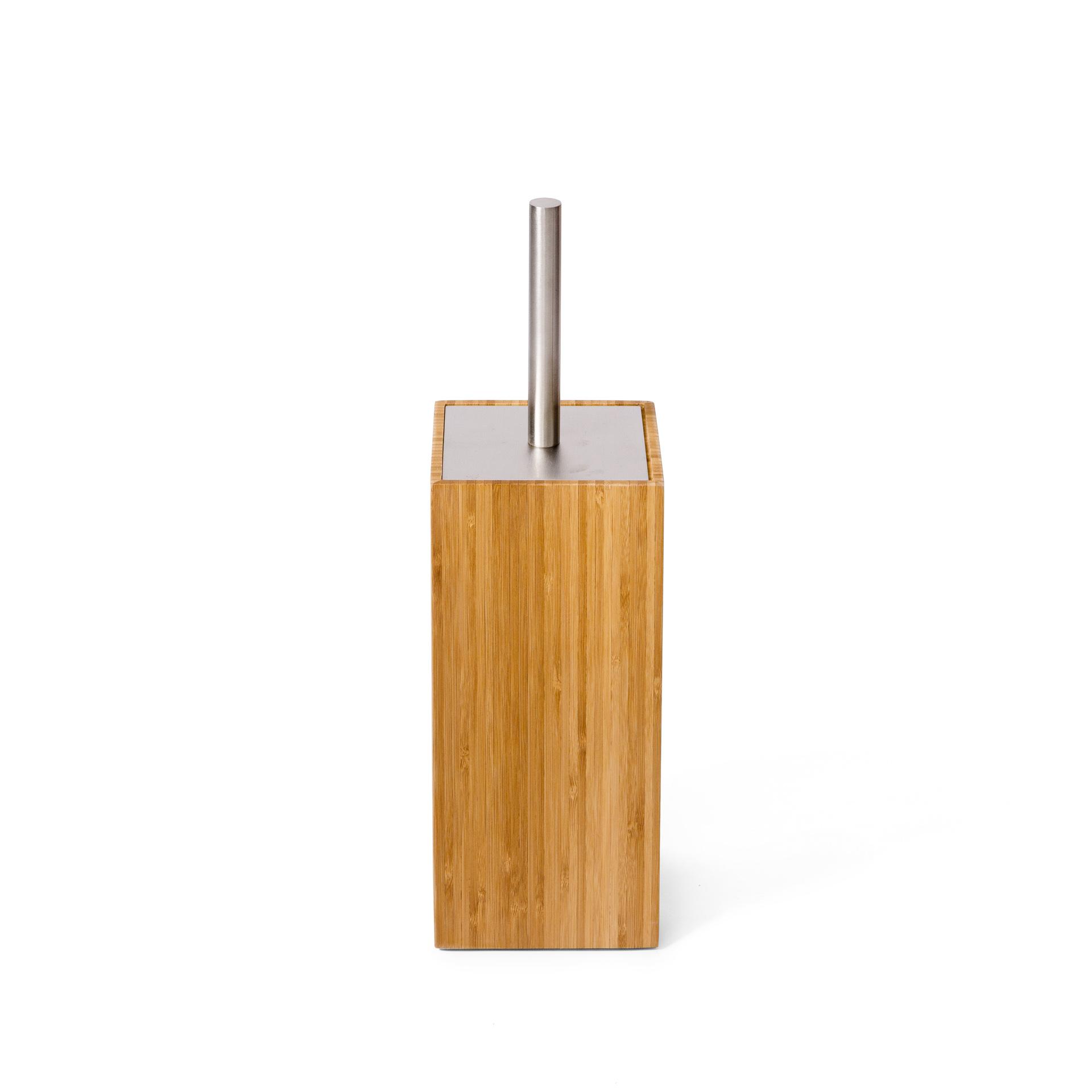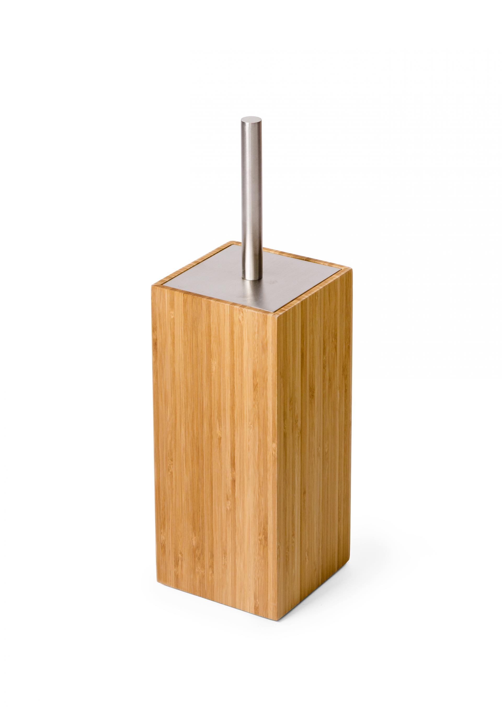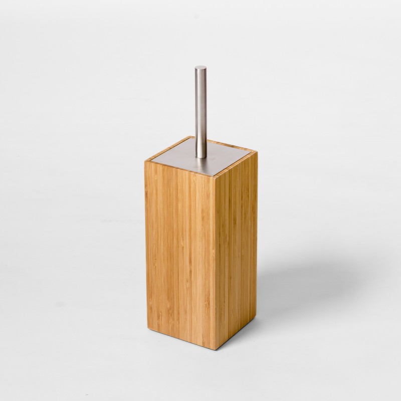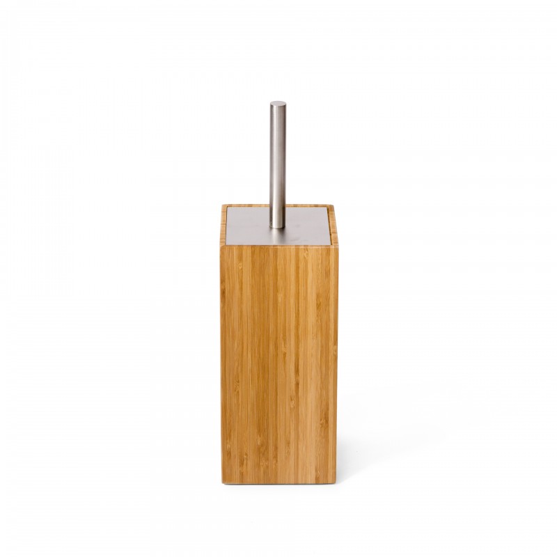 A solid bamboo box conceals the brush inside. The brush handle is made from matt stainless steel and all components that come into contact with water are plastic. Supplied with a spare brush for future use and a hygienic plastic liner to protect the wood. Additional spares can be ordered separately.