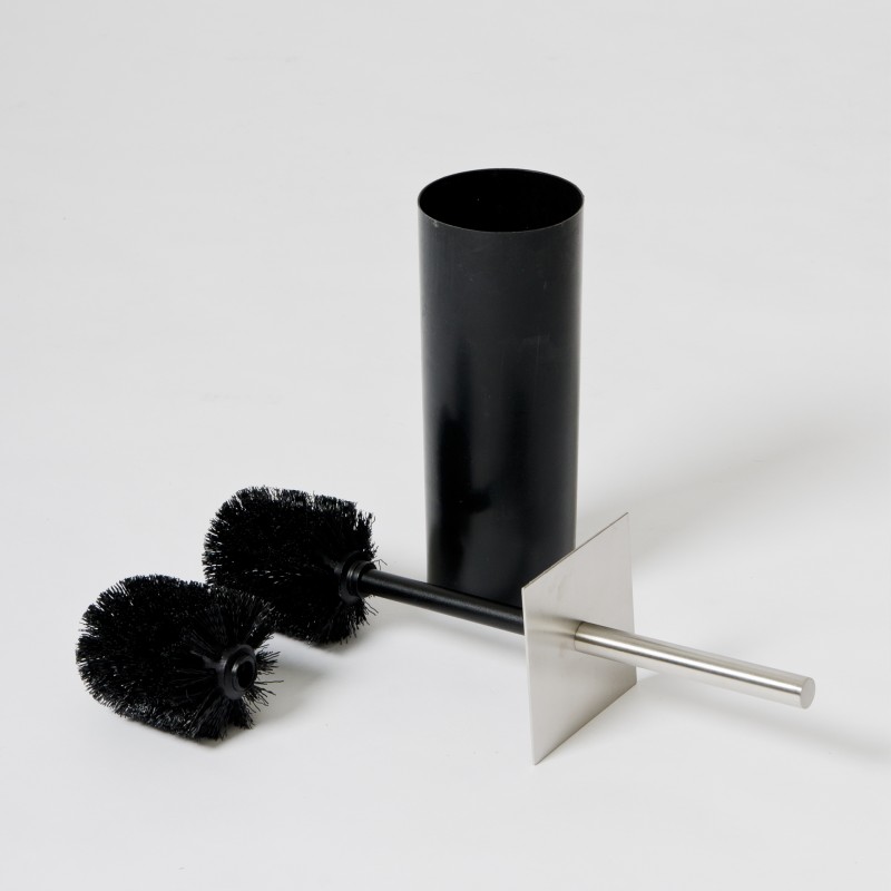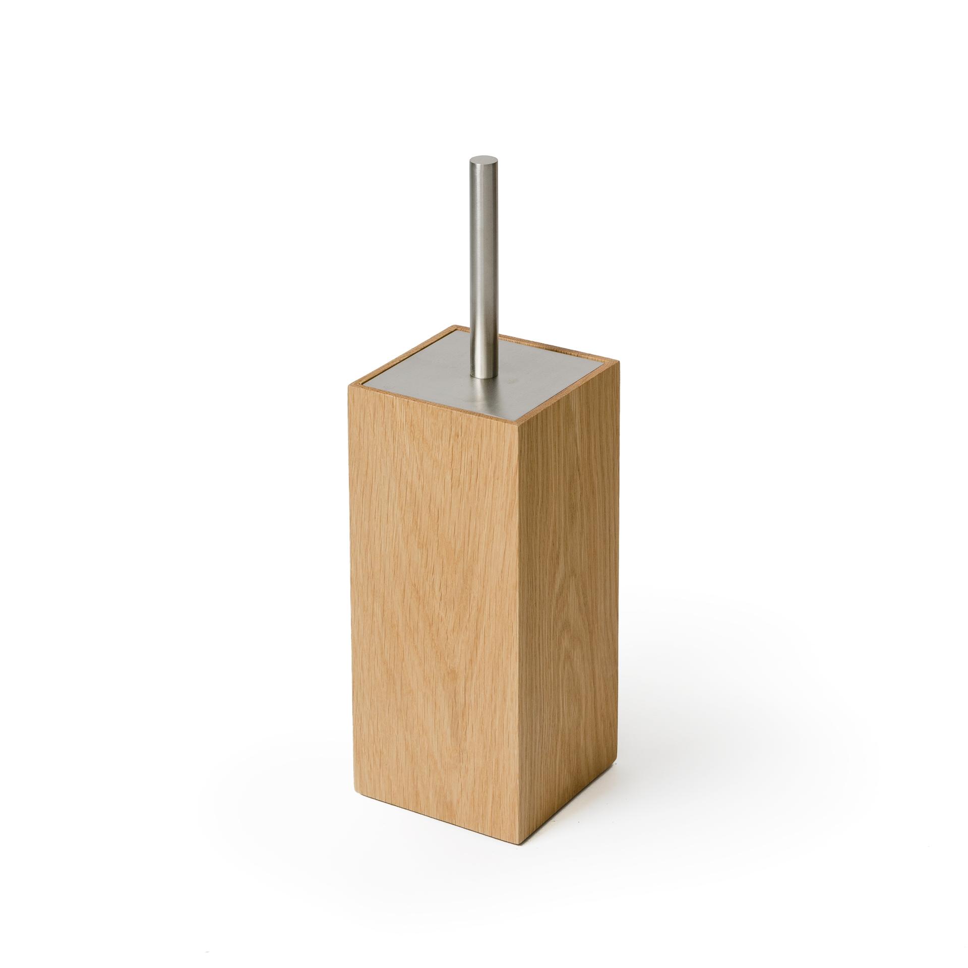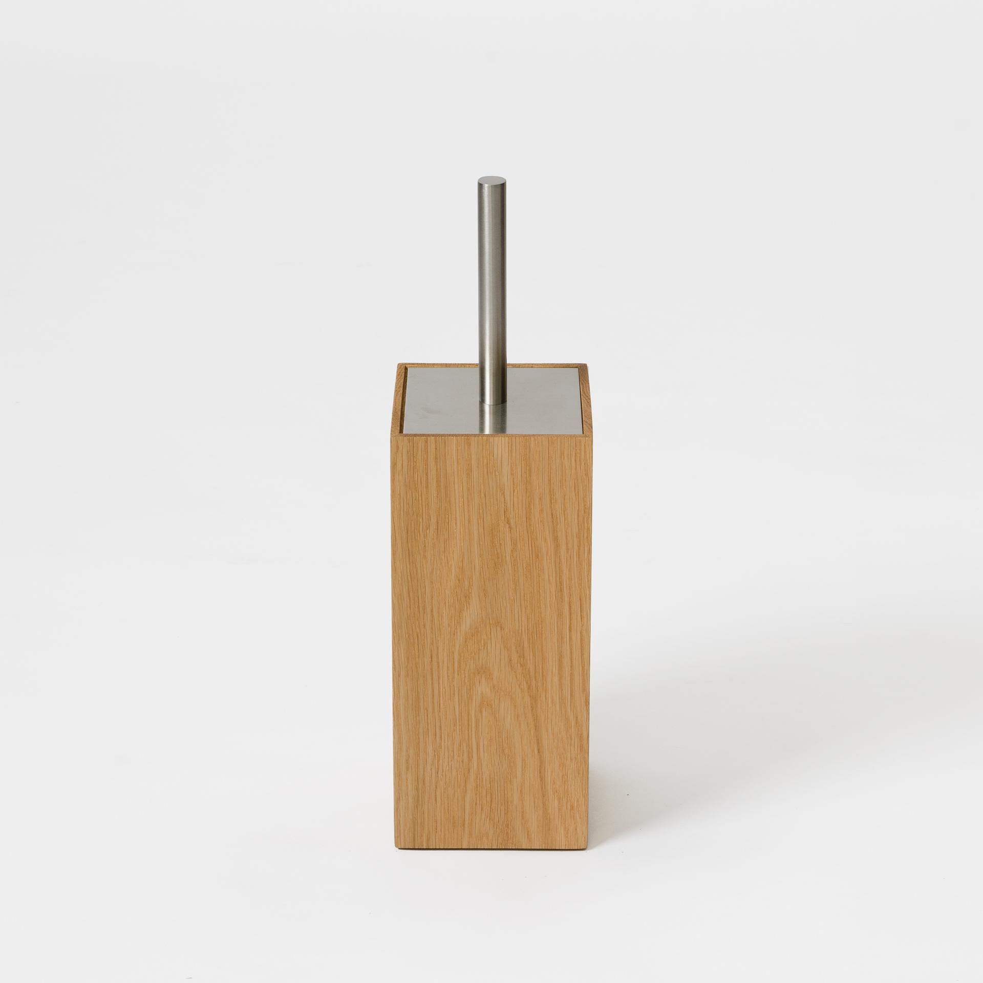A solid oak box conceals the brush inside. The brush handle is made from matt stainless steel and all components that come into contact with water are plastic. Supplied with a spare brush for future use and a hygienic plastic liner to protect the wood. Additional spares can be ordered separately.