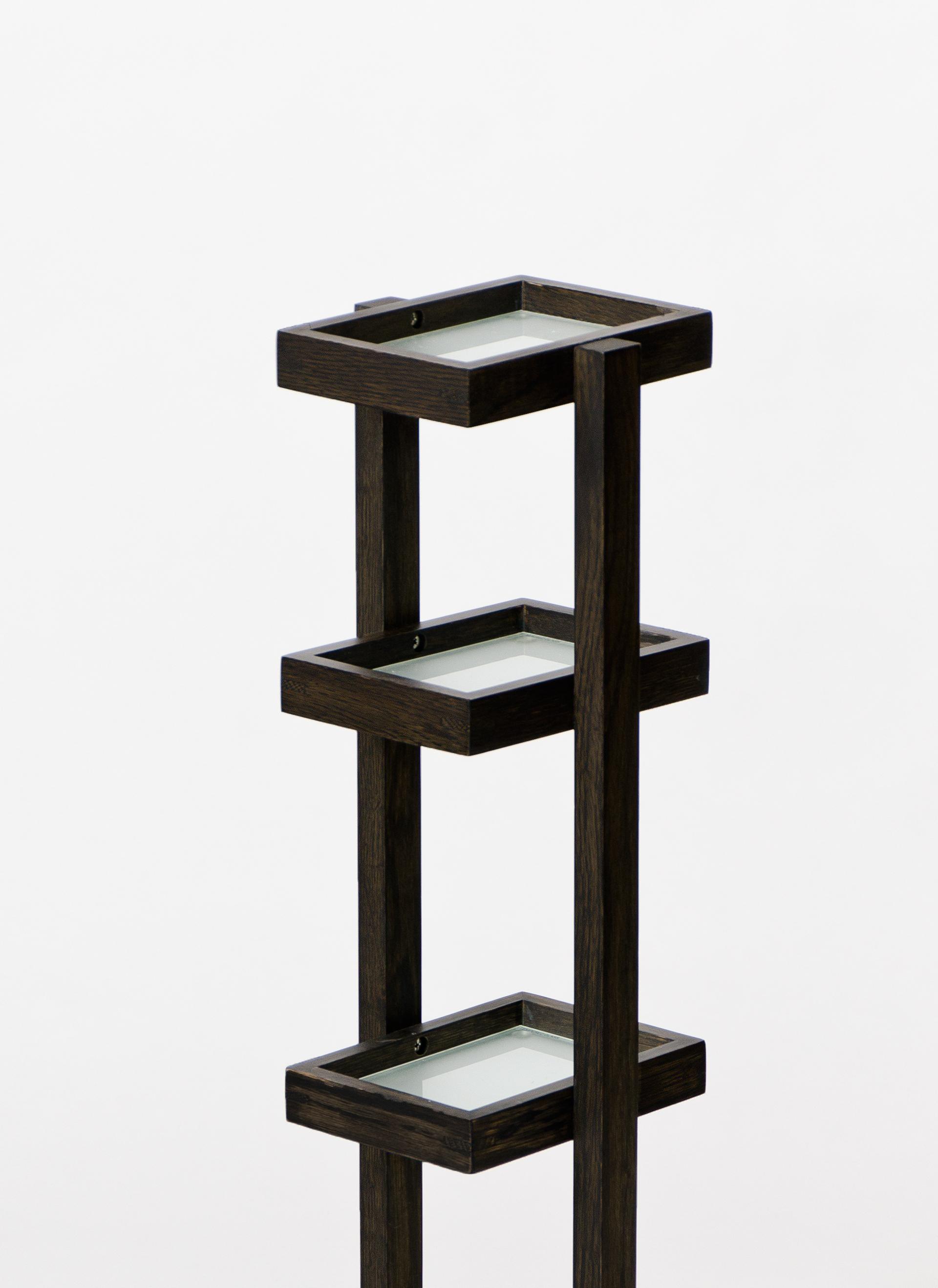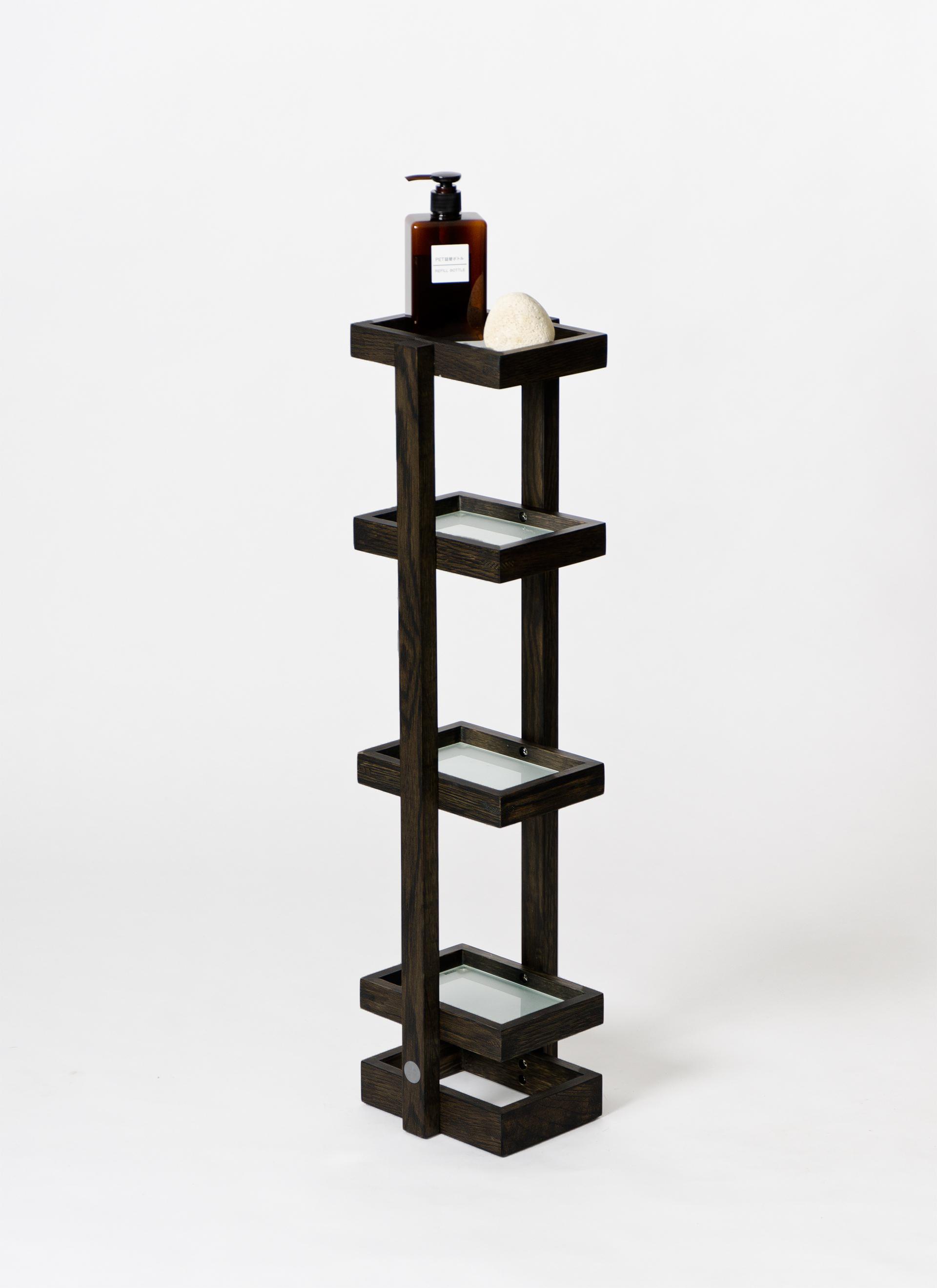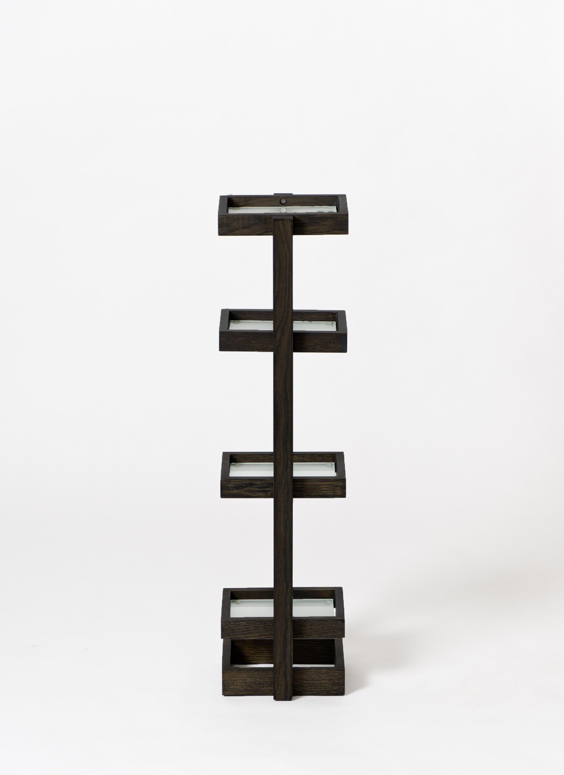A compact design featuring four frosted, tempered glass shelves that combine elegantly with a solid oak frame to provide the perfect solution for your storage needs.